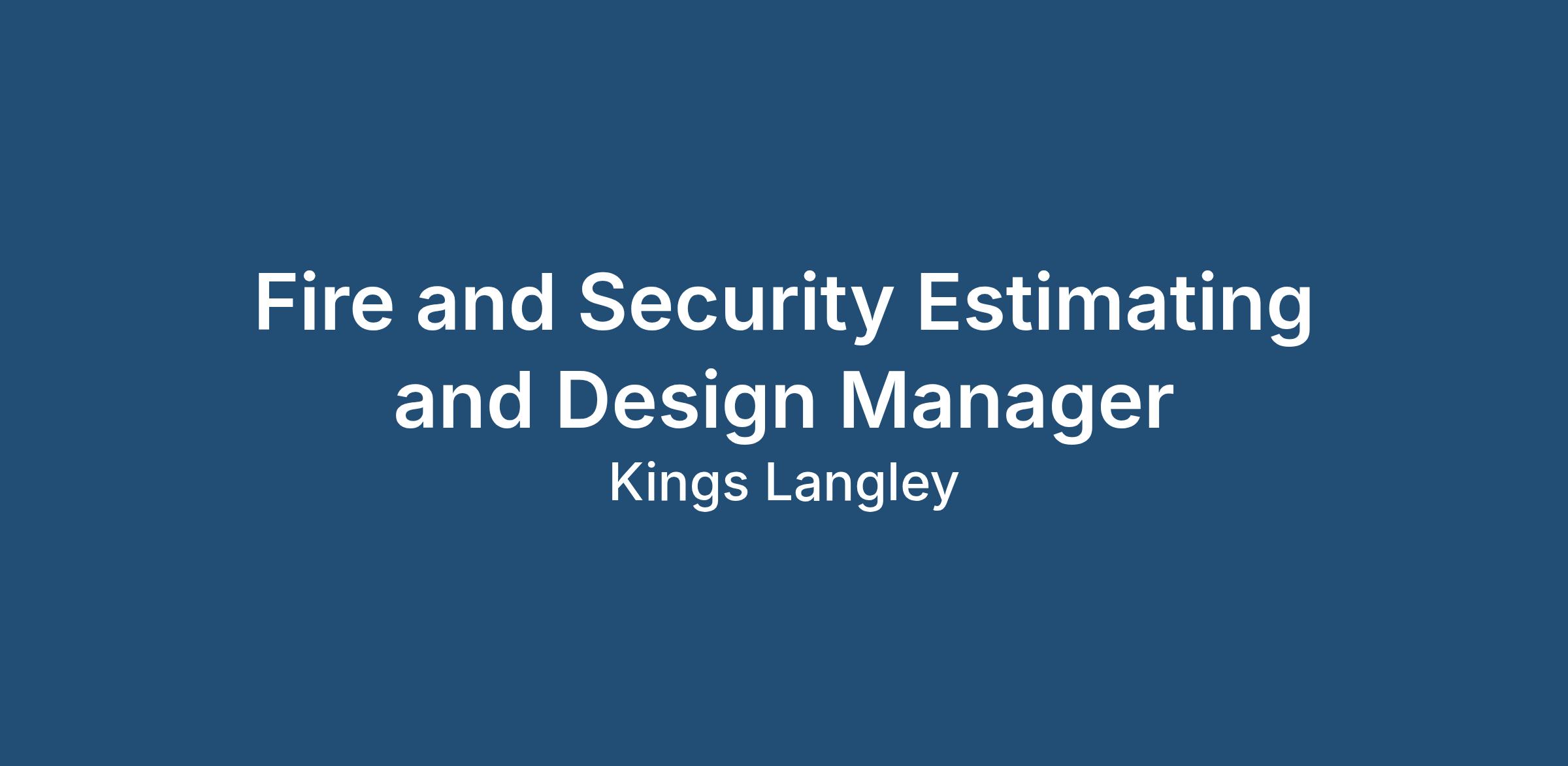 Estimating Design Manager - Fire and Security - Hertfordshire