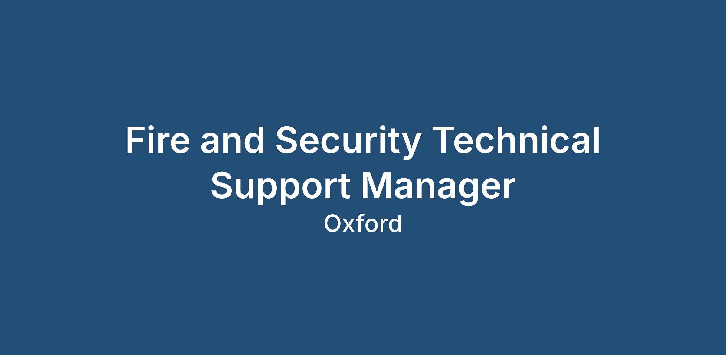 Requirements - Fire and Security, Technical Support Manager