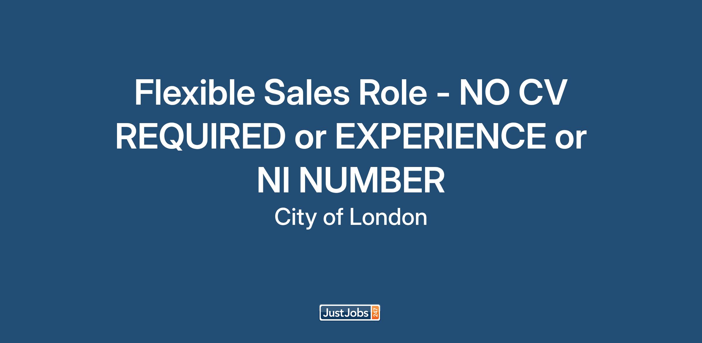 Flexible Sales Role - NO CV REQUIRED or EXPERIENCE or NI NUMBER -Training provided Daily Pay in Cash