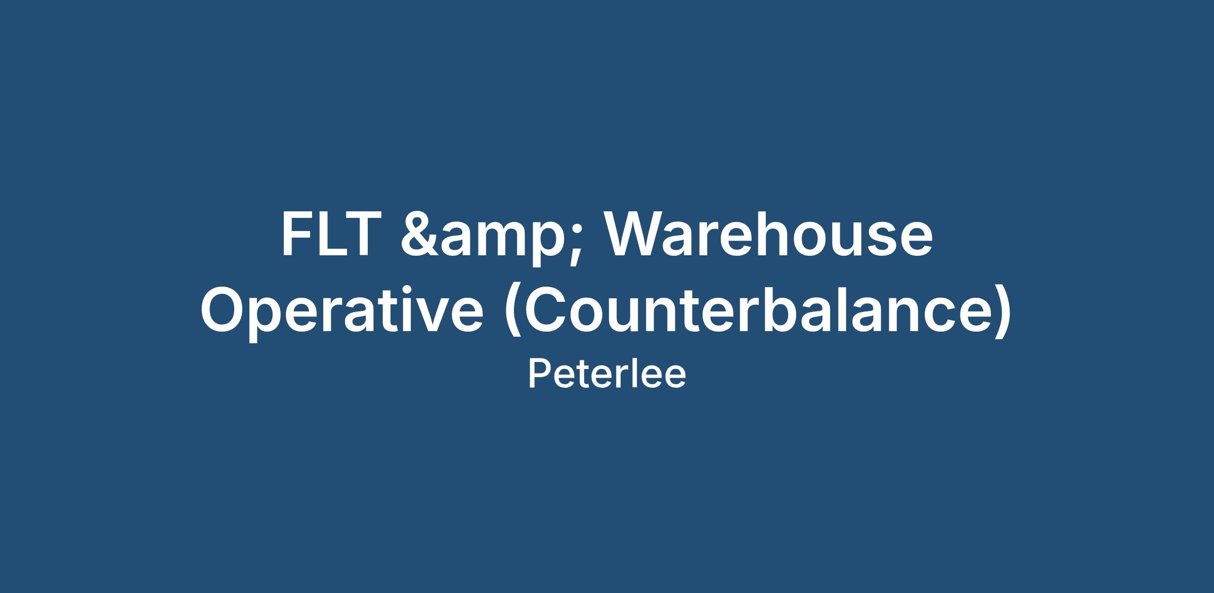 Job Title: FLT & Warehouse Operative (Counterbalance)