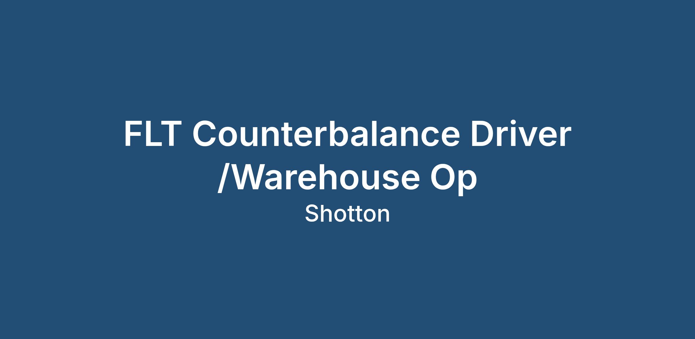 FLT Counterbalance Driver /Warehouse Op