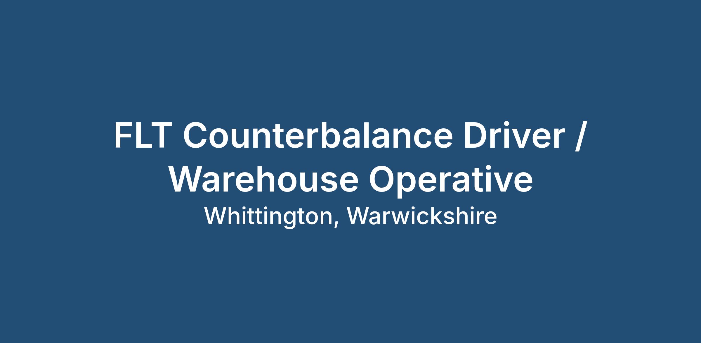 Job duties for a FLT Counterbalance Driver / Warehouse Operative: