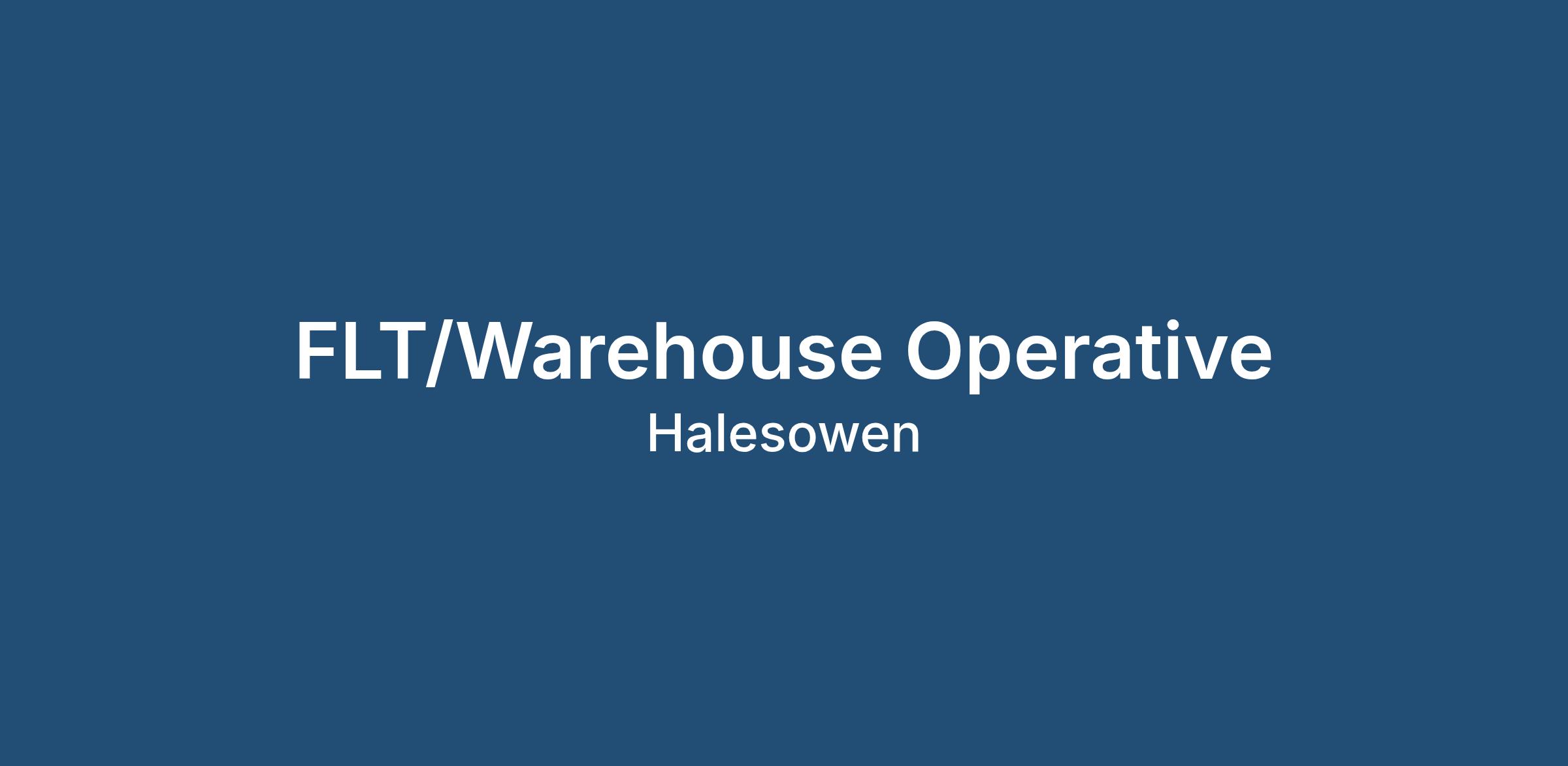 Due to company expansion, we are now recruiting for a FLT/warehouse operative to work in a fast paced, modern warehouse to be part of a team completing various warehouse and FLT duties.