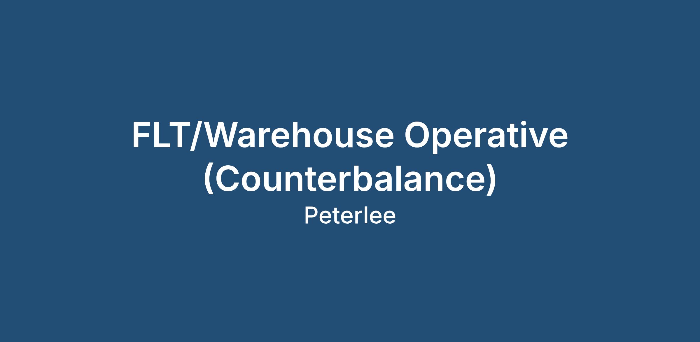 Job Title: FLT & Warehouse Operative (Counterbalance)