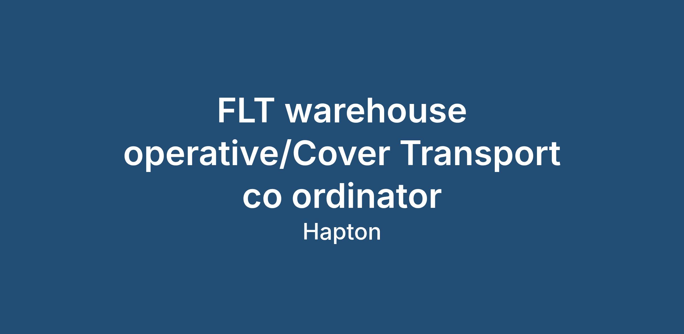 A new job opportunity has arisen for our client based in Burnley for a FLT Warehouse operative/Cover Transport controller.