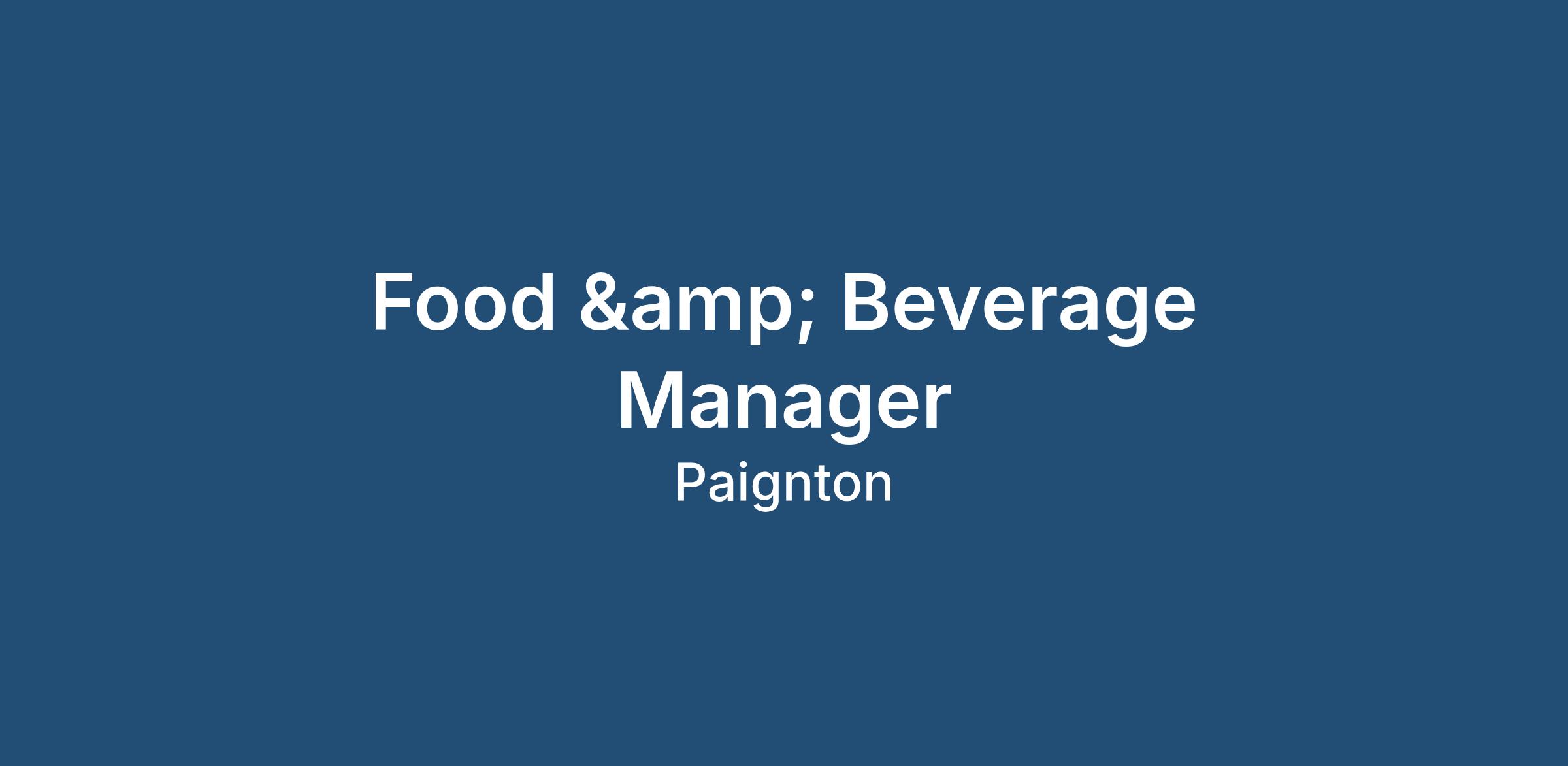 Job Shop Recruitment has a fantastic opportunity for a Temporary / Contract Food & Beverage Manager for our client of based in Paignton.