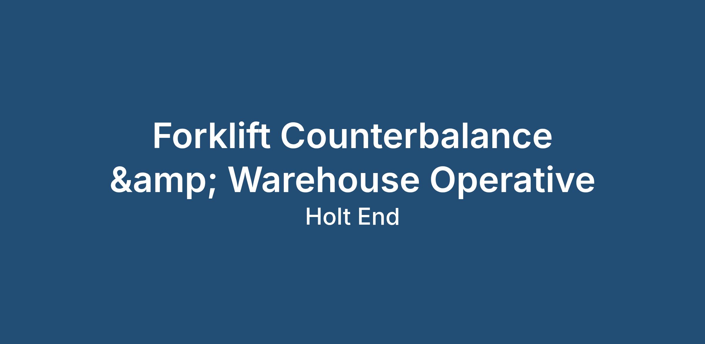 Counterbalance Driver/Warehouse Operative