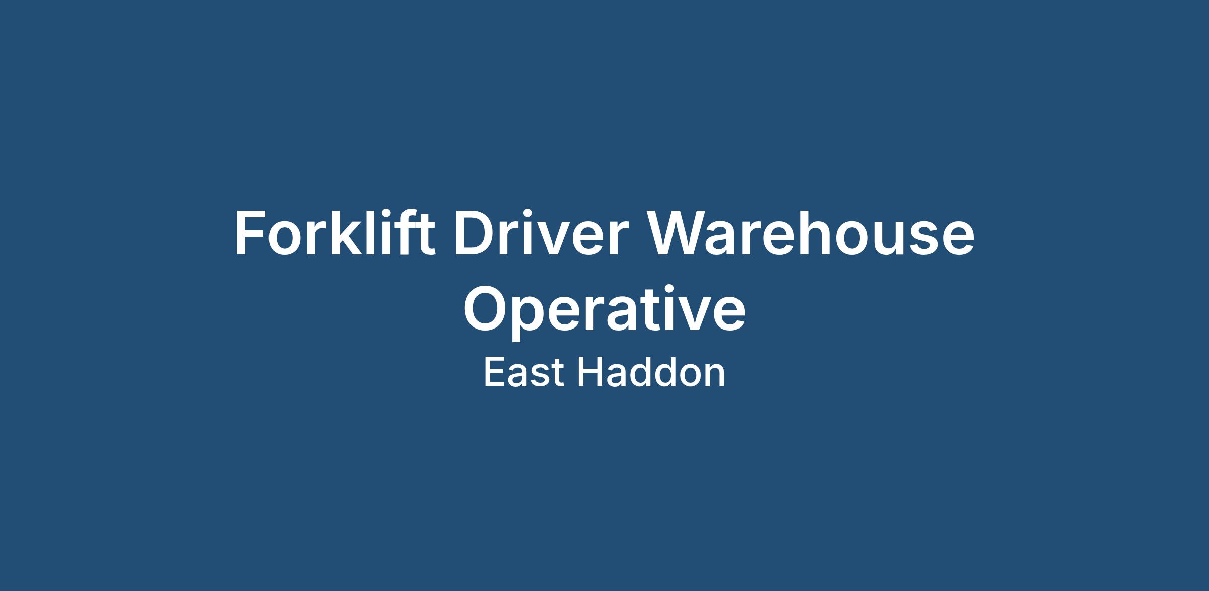 * Forklift experience preferred (licence desirable but not essential)