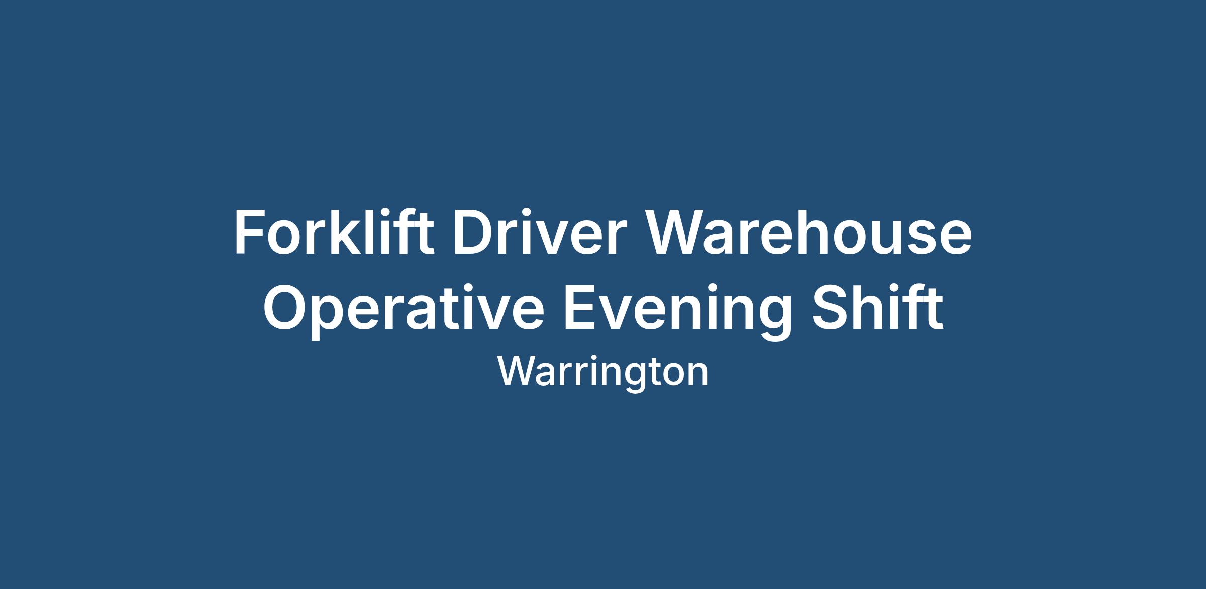 Forklift Driver Warehouse Operative Evening Shift