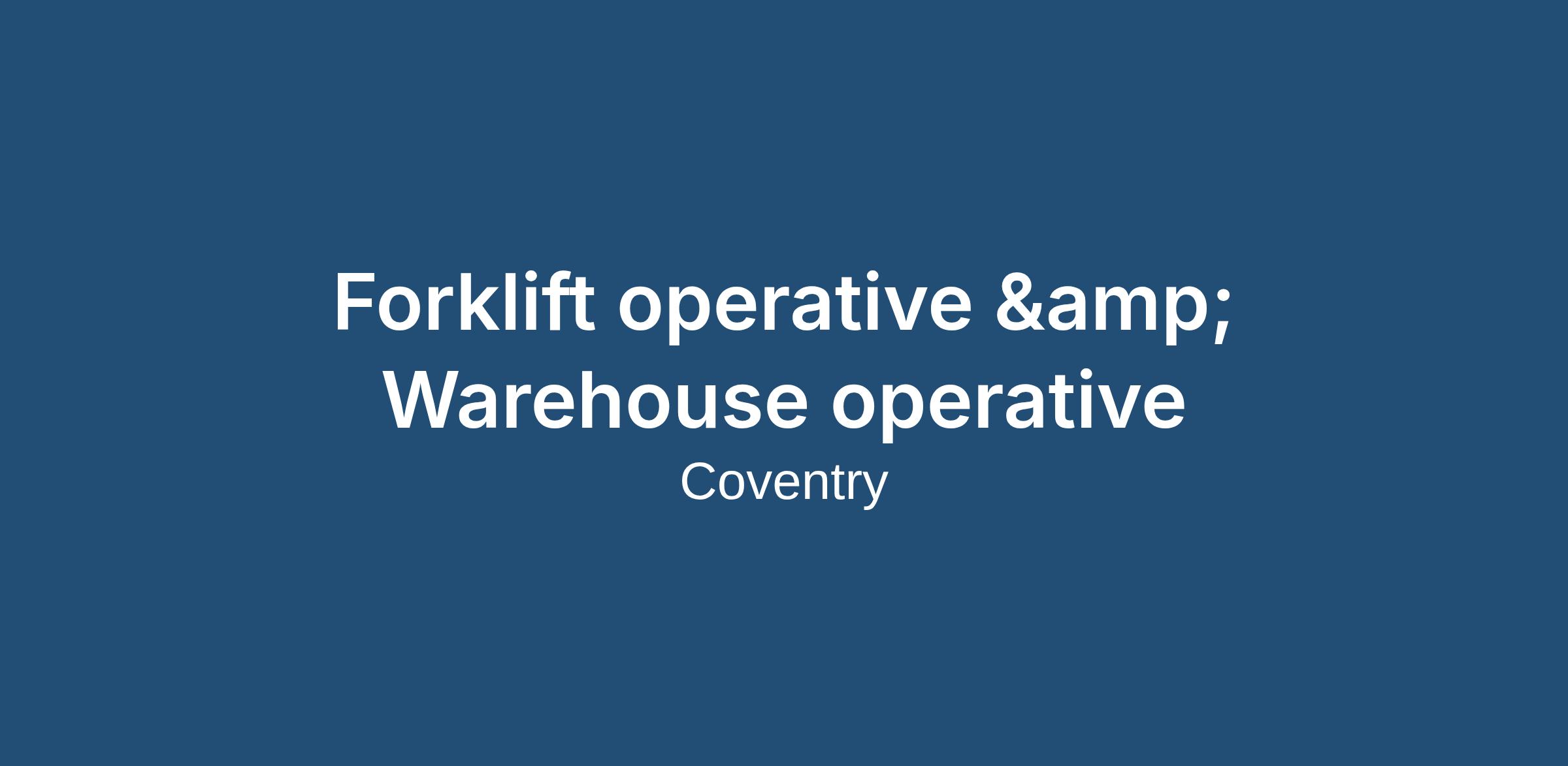 Forklift Drivers & Warehouse Operatives - West Midlands