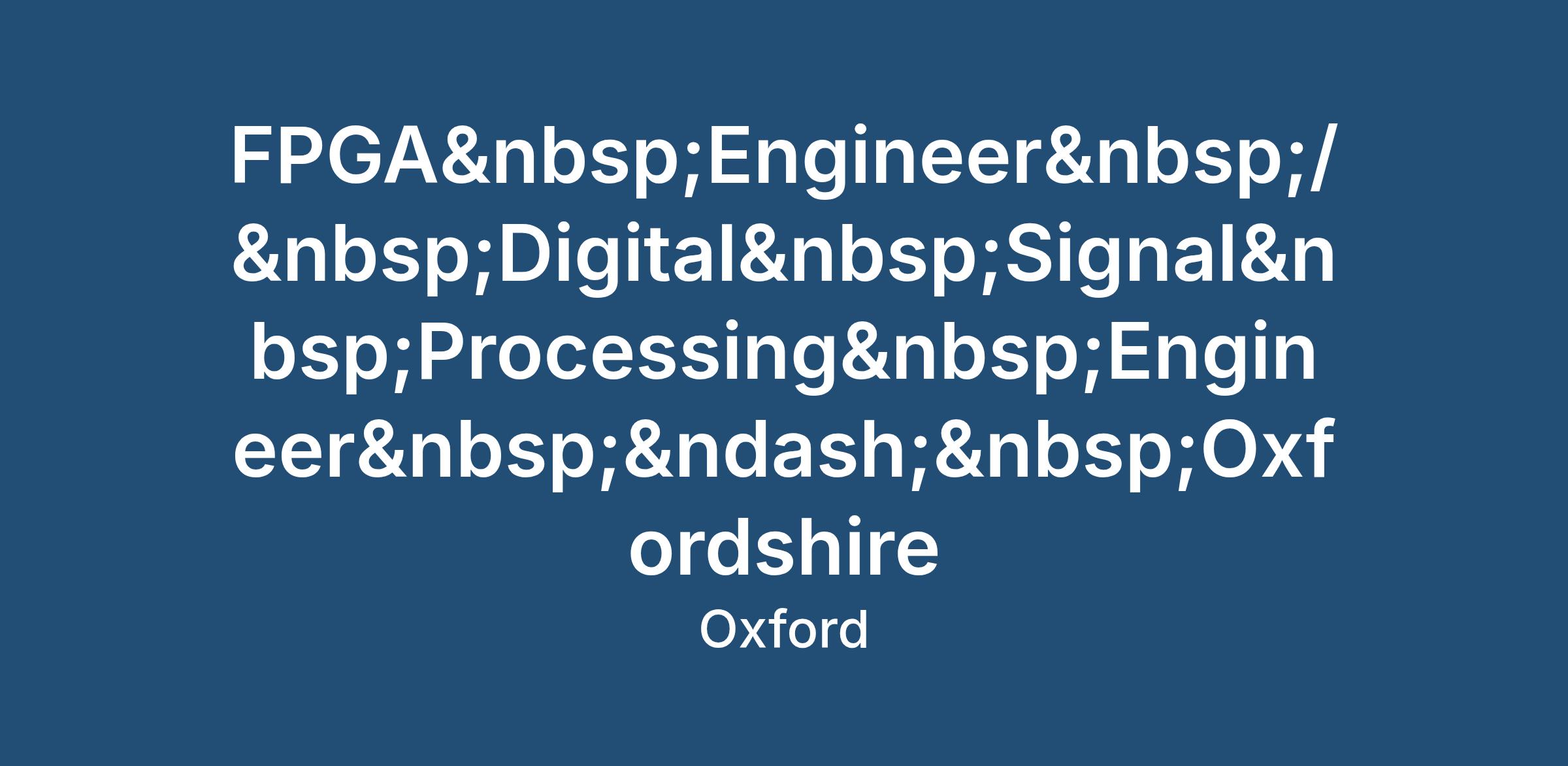 FPGA Engineer / Digital Signal Processing Engineer – Oxfordshire