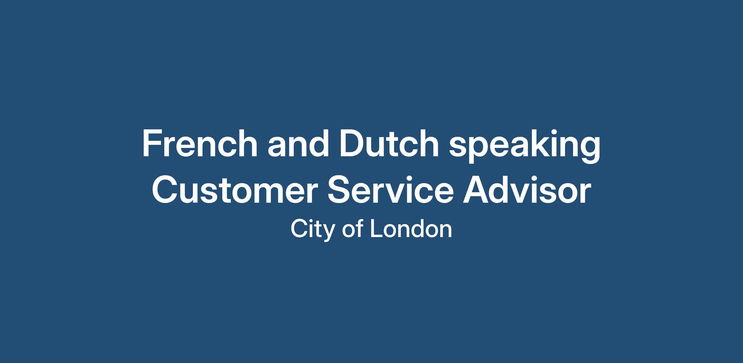 French and Dutch speaking Customer Service Advisor