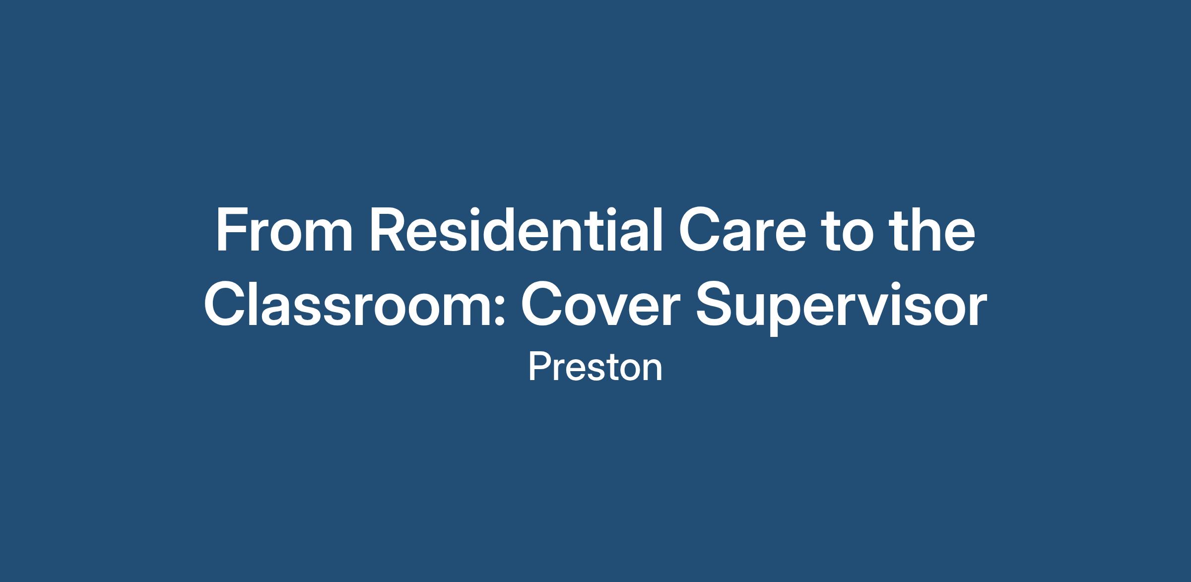 From Residential Care to the Classroom: Cover Supervisor