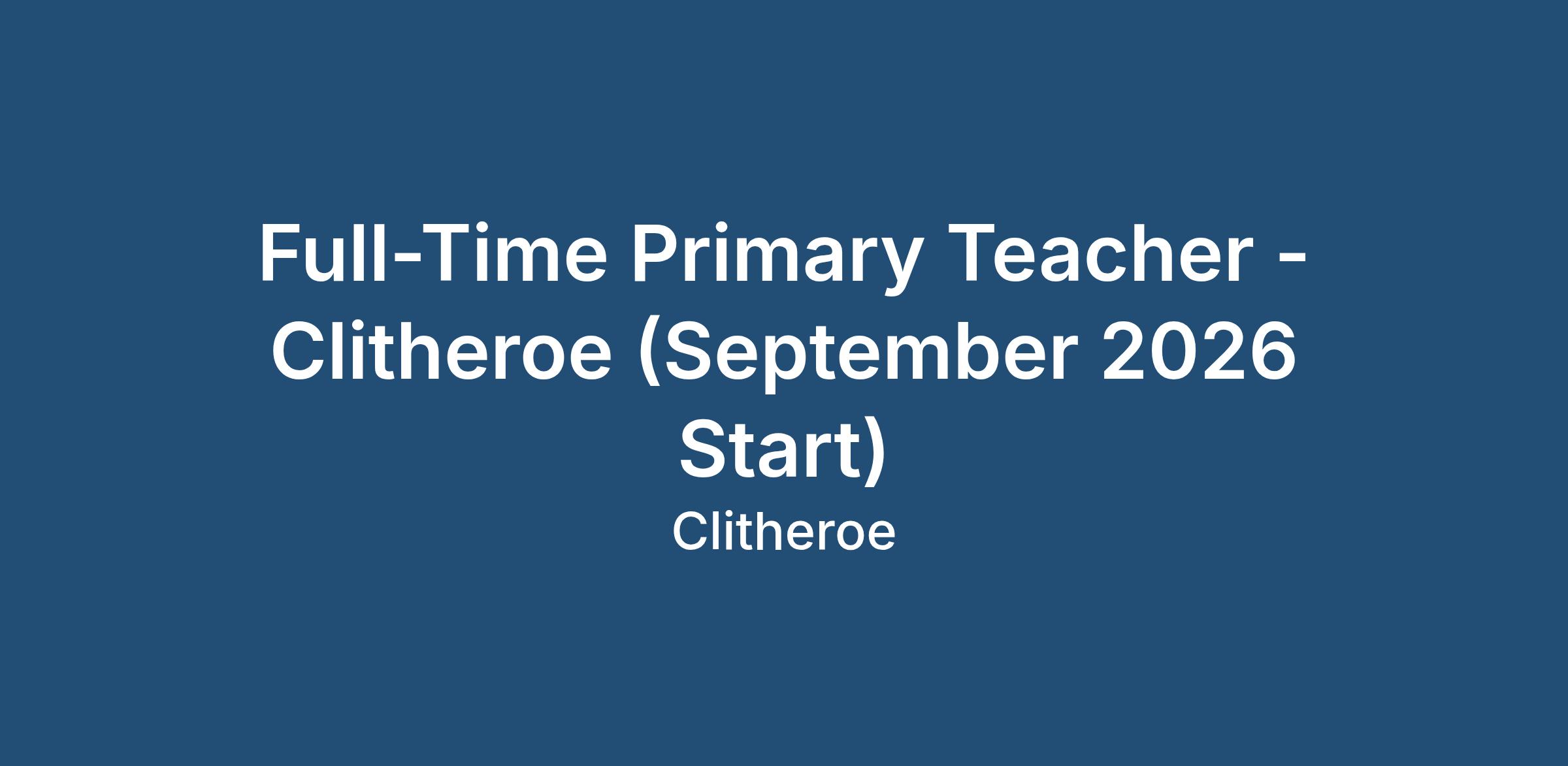 Full-Time Primary Teacher - Clitheroe (September 2026 Start)