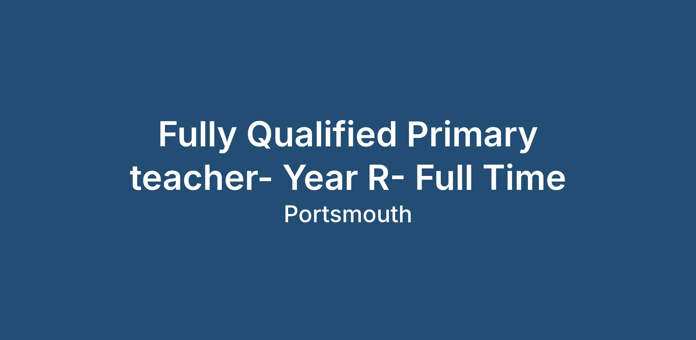 Fully Qualified Primary teacher- Year R- Full Time