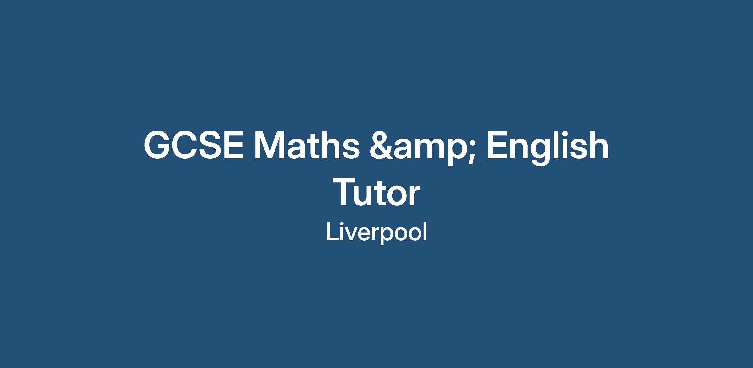 Job Title: GCSE Maths & English Tutor Liverpool and St Helens