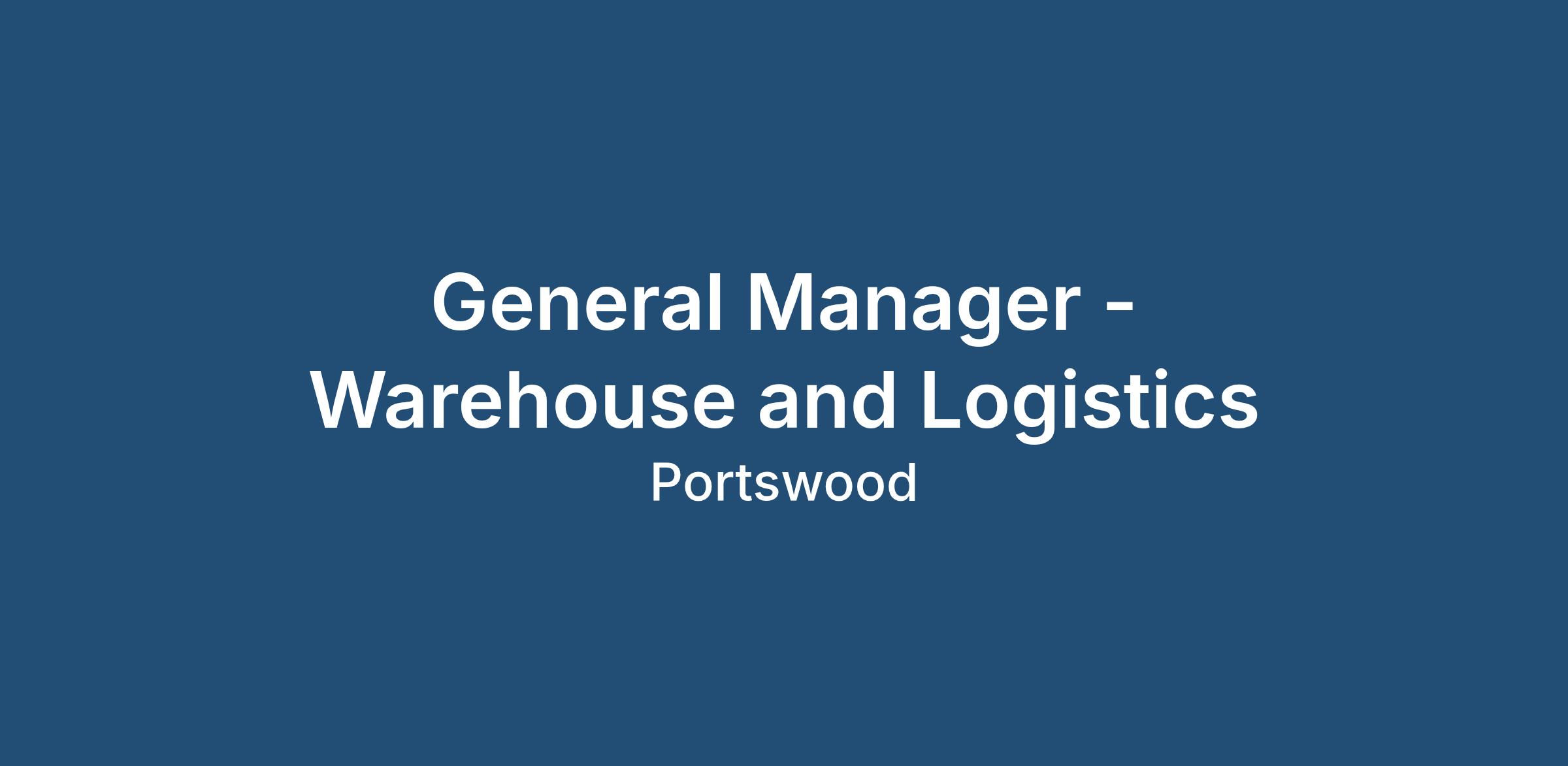 Why apply for this General Manager - Warehouse & Logistics role?