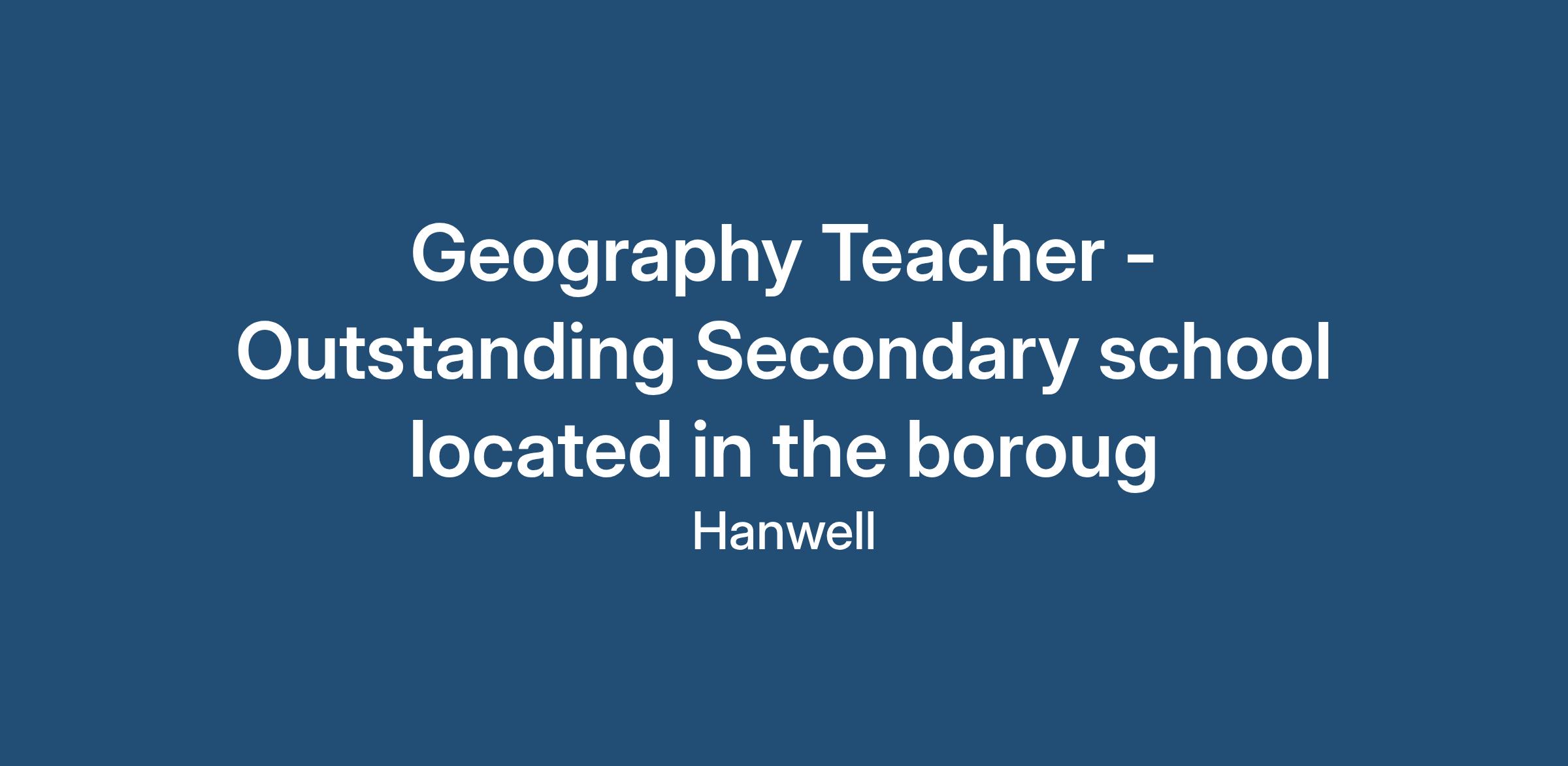 Geography Teacher - Outstanding Secondary school located in the boroug