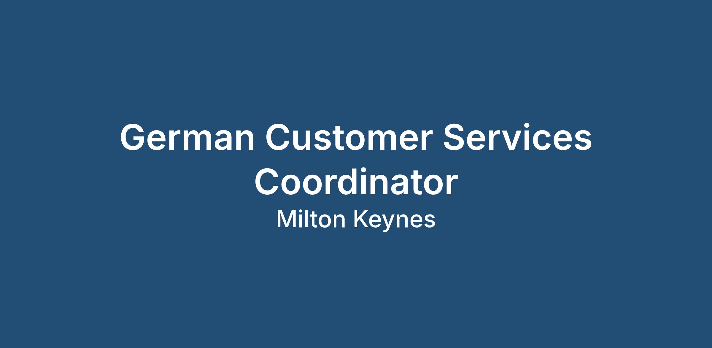 German Customer Services Coordinator Role Overview: