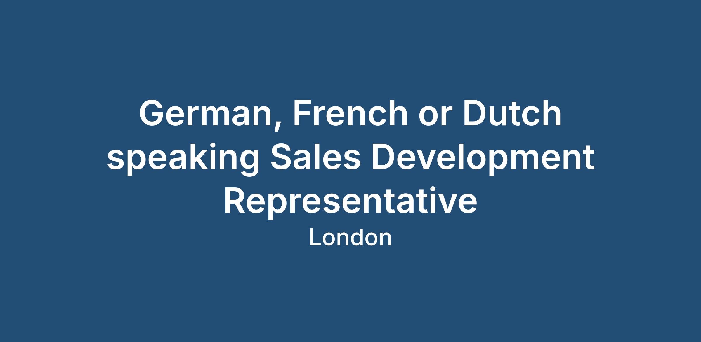 Sales Development Representative - French, Dutch or German speaking