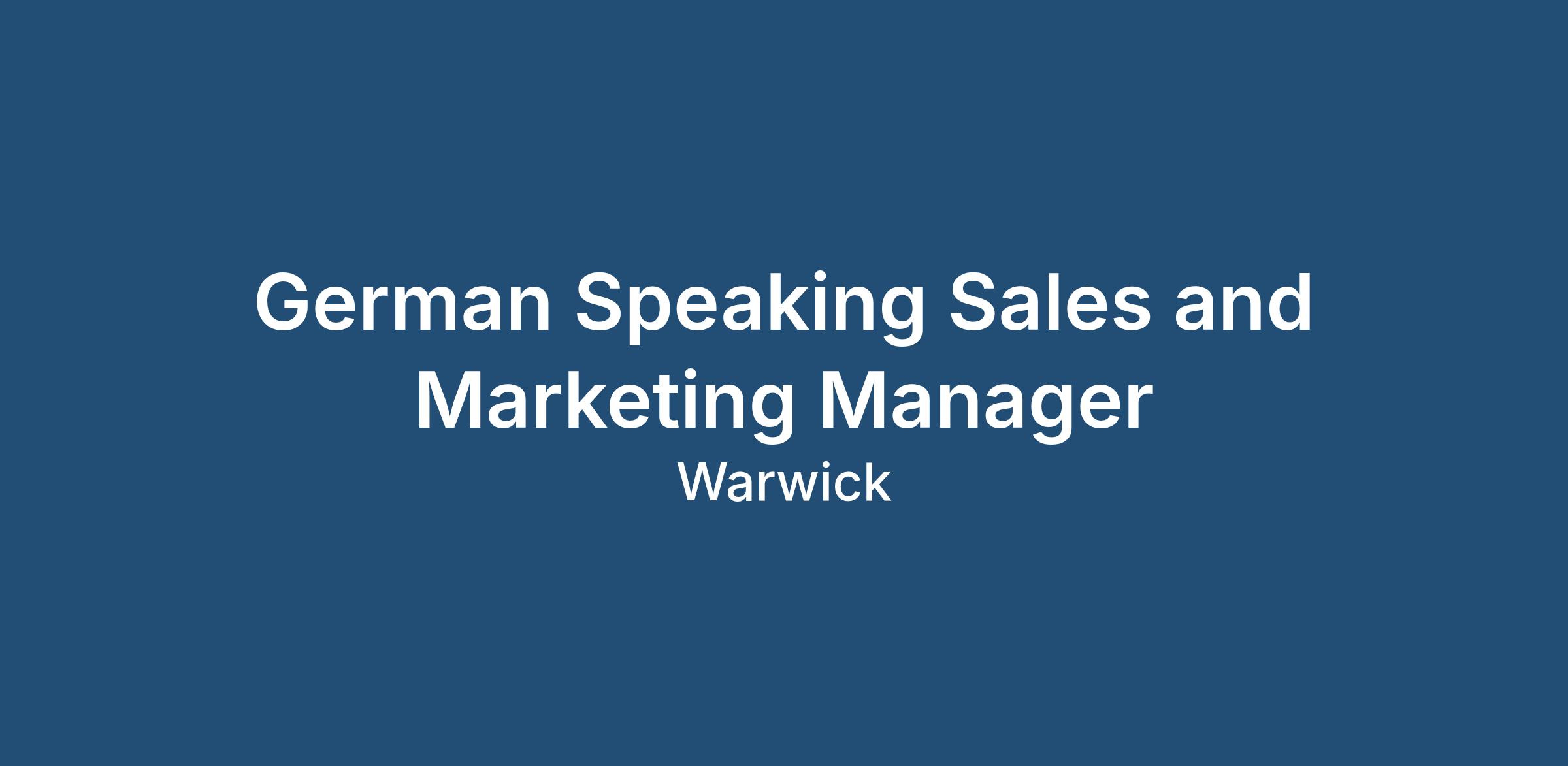 Job Title: German Speaking Sales and Marketing Manager, DACH (Germany, Austria, Switzerland)