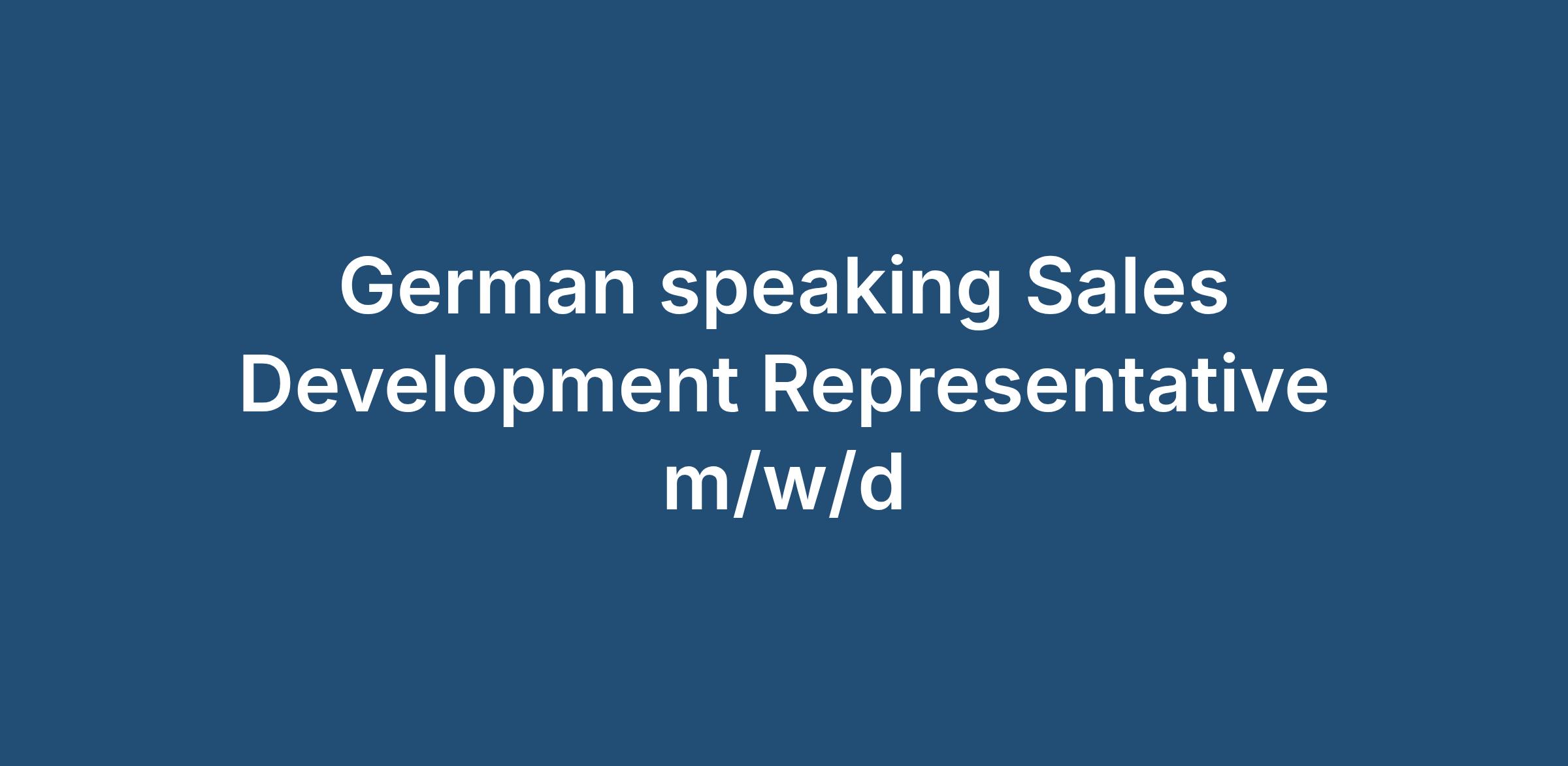 German speaking Sales Development Representative m/w/d