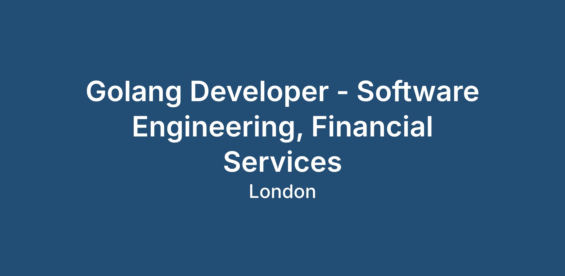 Golang Developer - Software Engineering, Financial Services