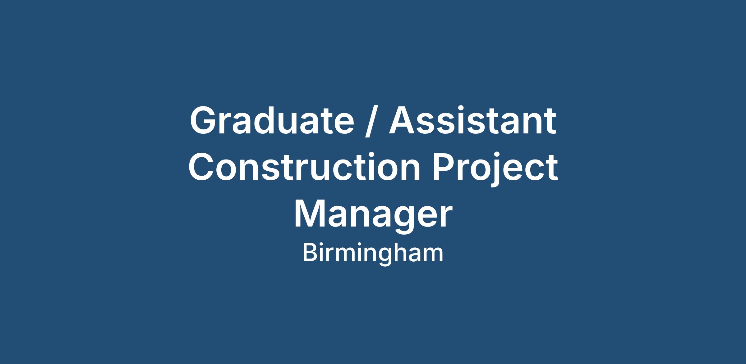 We are looking for an Assistant Project Manager with a recent Construction related degree and ideally at least 1-2 years construction industry experience. As this role does require some travel a driving license and use of a vehicle is essential. You MUST also already be based within commuting distance of Birmingham city centre. Great communication skills are a must
