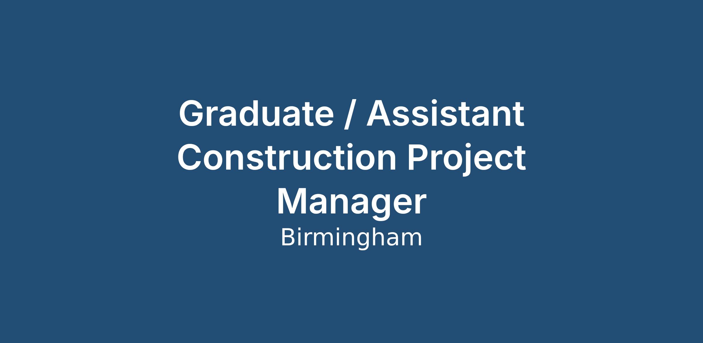 We are looking for an Assistant Project Manager with a recent Construction related degree and ideally at least 1-2 years construction industry experience. As this role does require some travel a driving license and use of a vehicle is essential. You MUST also already be based within commuting distance of Birmingham city centre. Great communication skills are a must