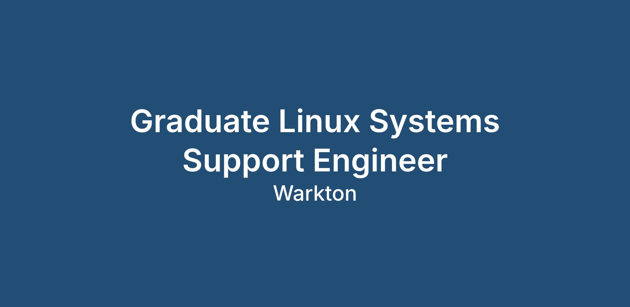 We are currently recruiting for a Graduate Linux Systems Support Engineer on a permanent basis for an expanding business based in Kettering.