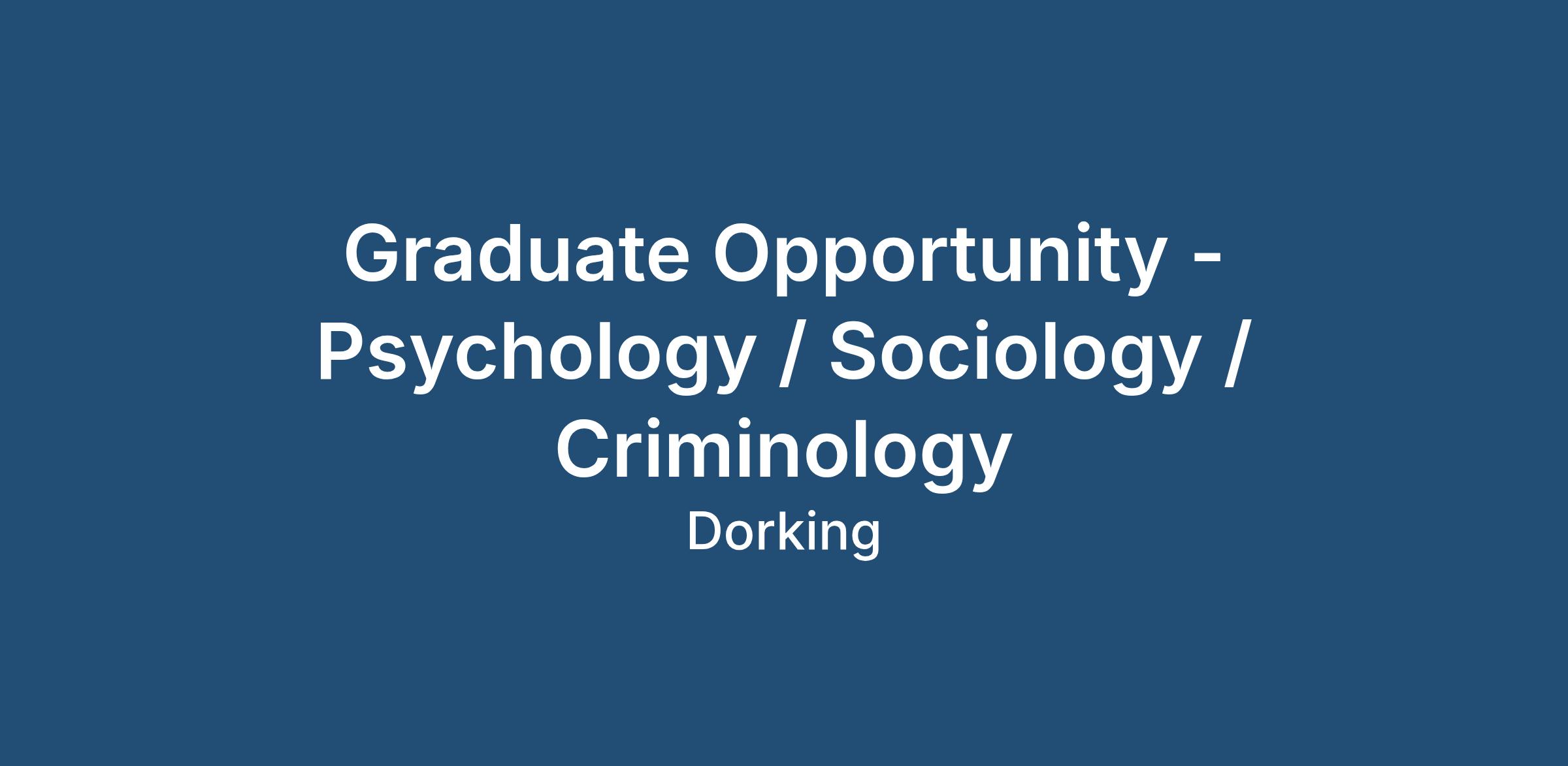 Graduate Opportunity - Psychology / Sociology / Criminology