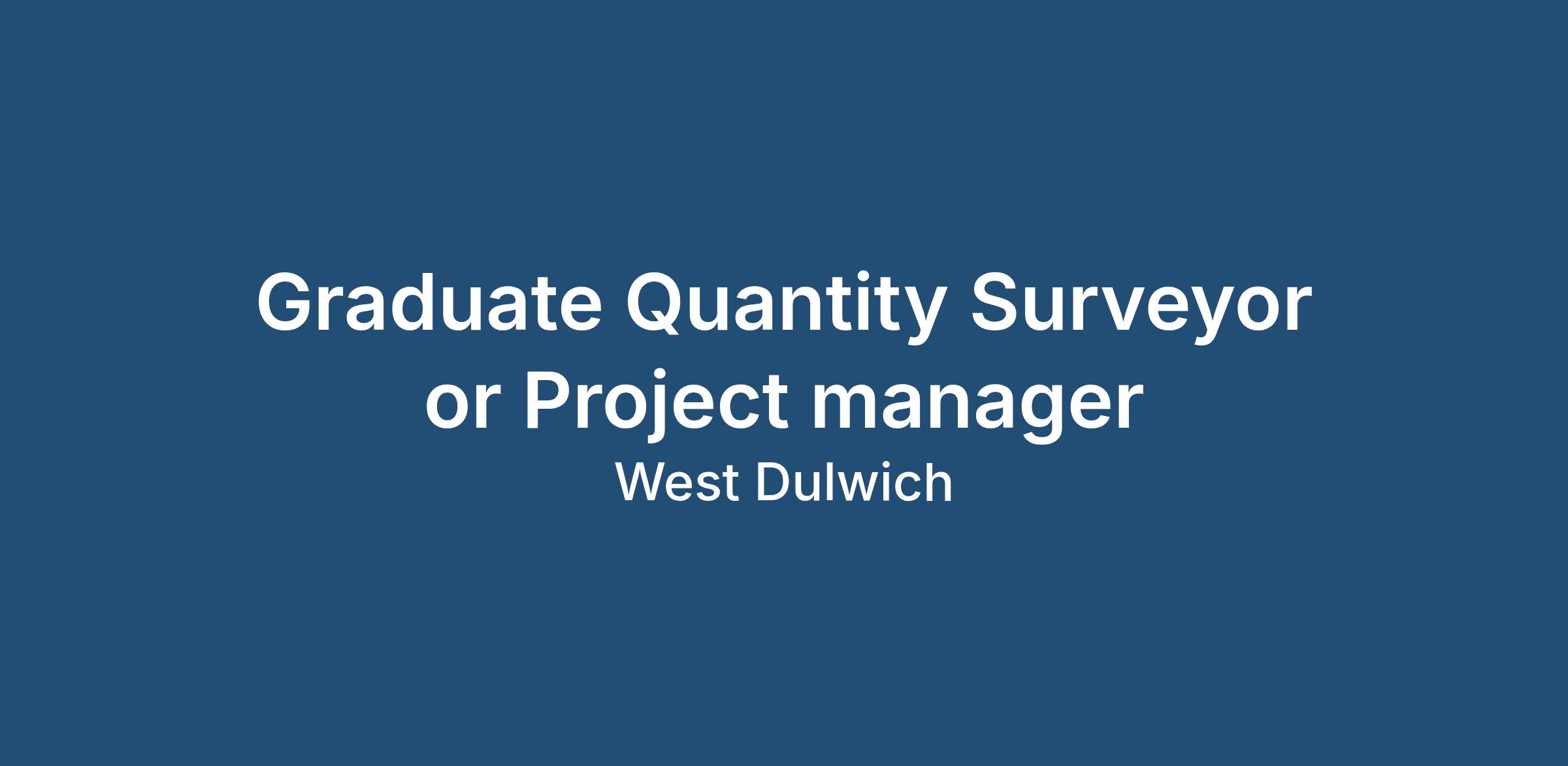 Graduate Quantity Surveyor / Project Manager – West Dulwich, London – £28,000 – £30,000