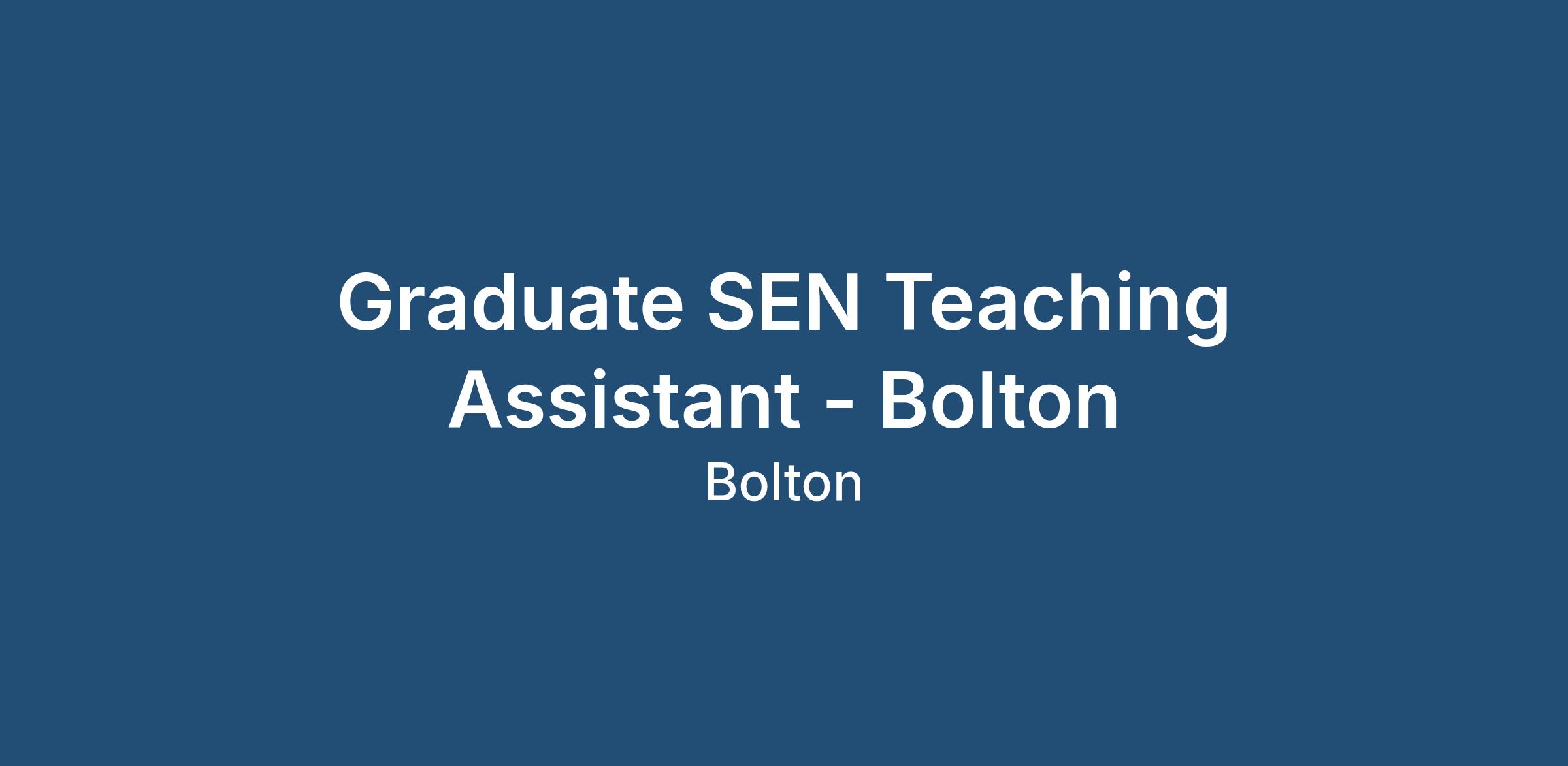 Graduate Teaching Assistant - Bolton - Start ASAP - SEND and Core Subject support