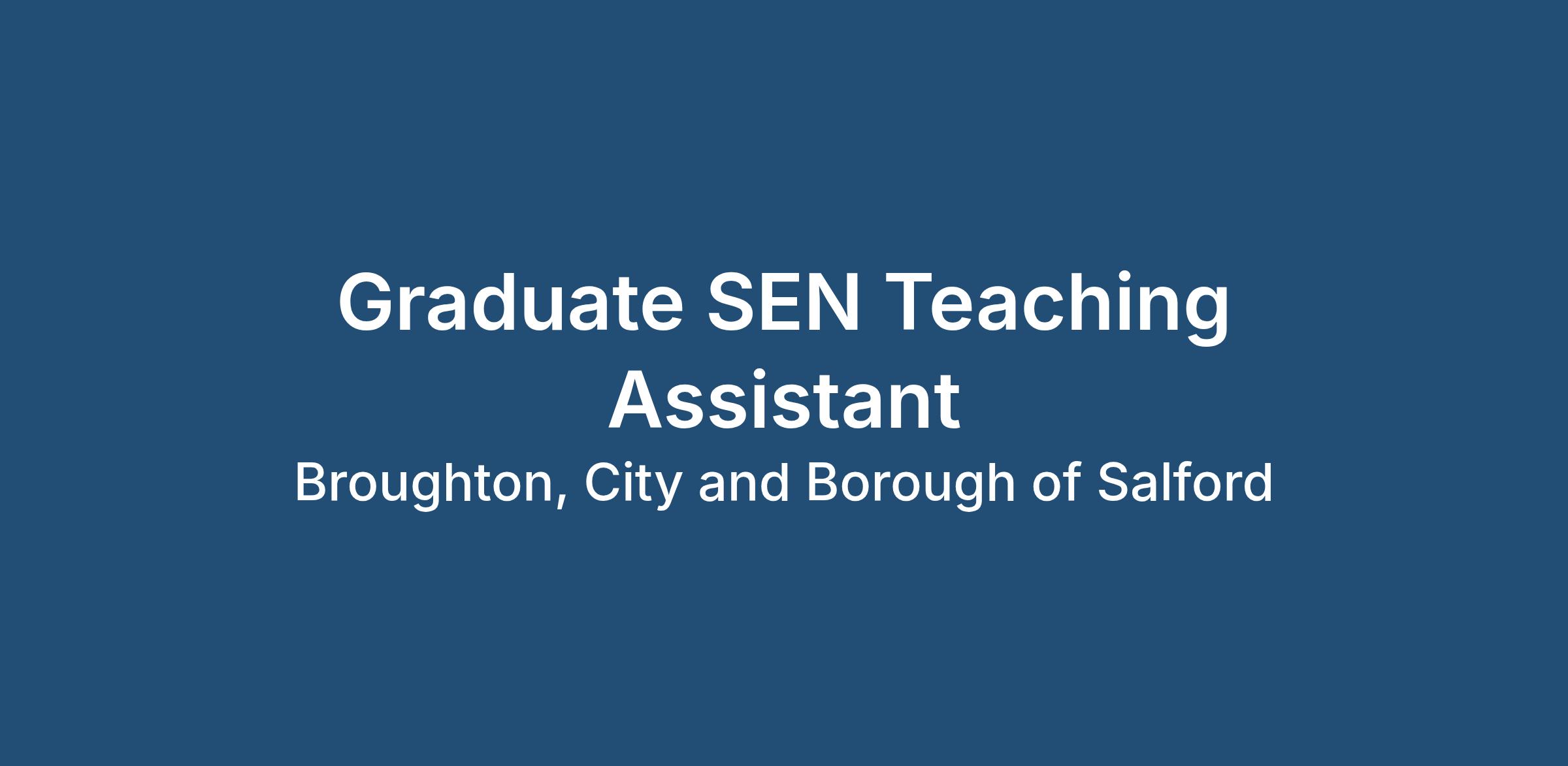 Passion for supporting disadvantaged and vulnerable young peopleThis Graduate SEN Teaching Assistant role in Salford offers a rewarding opportunity to build experience while making a real impact.
