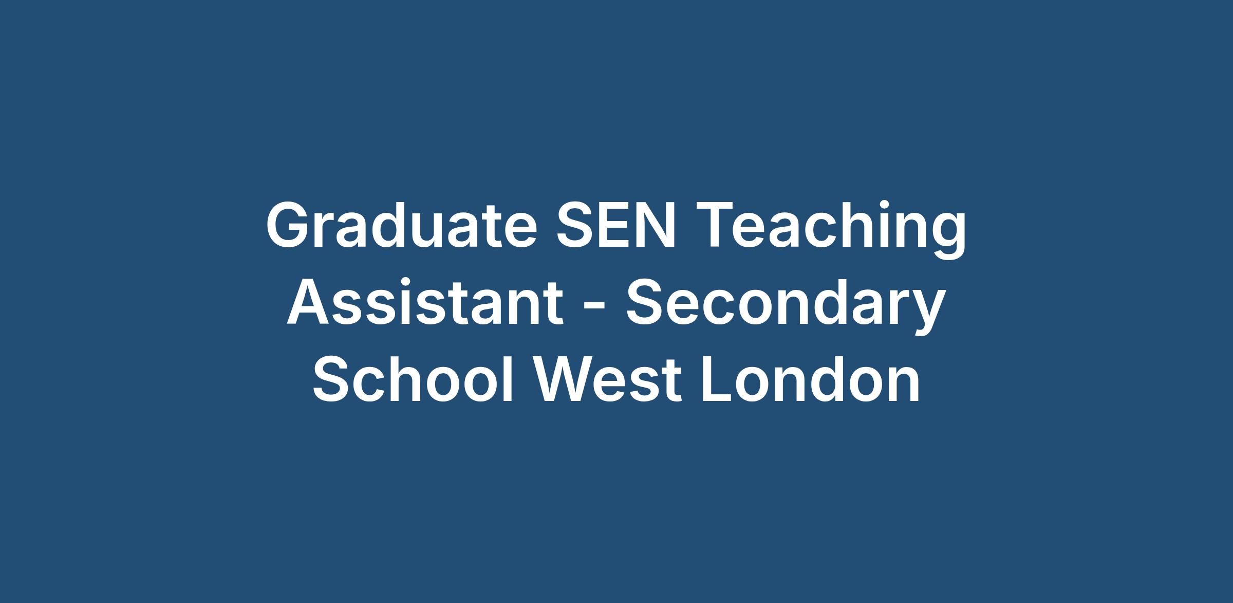 Graduate SEN Teaching Assistant - Secondary School West London