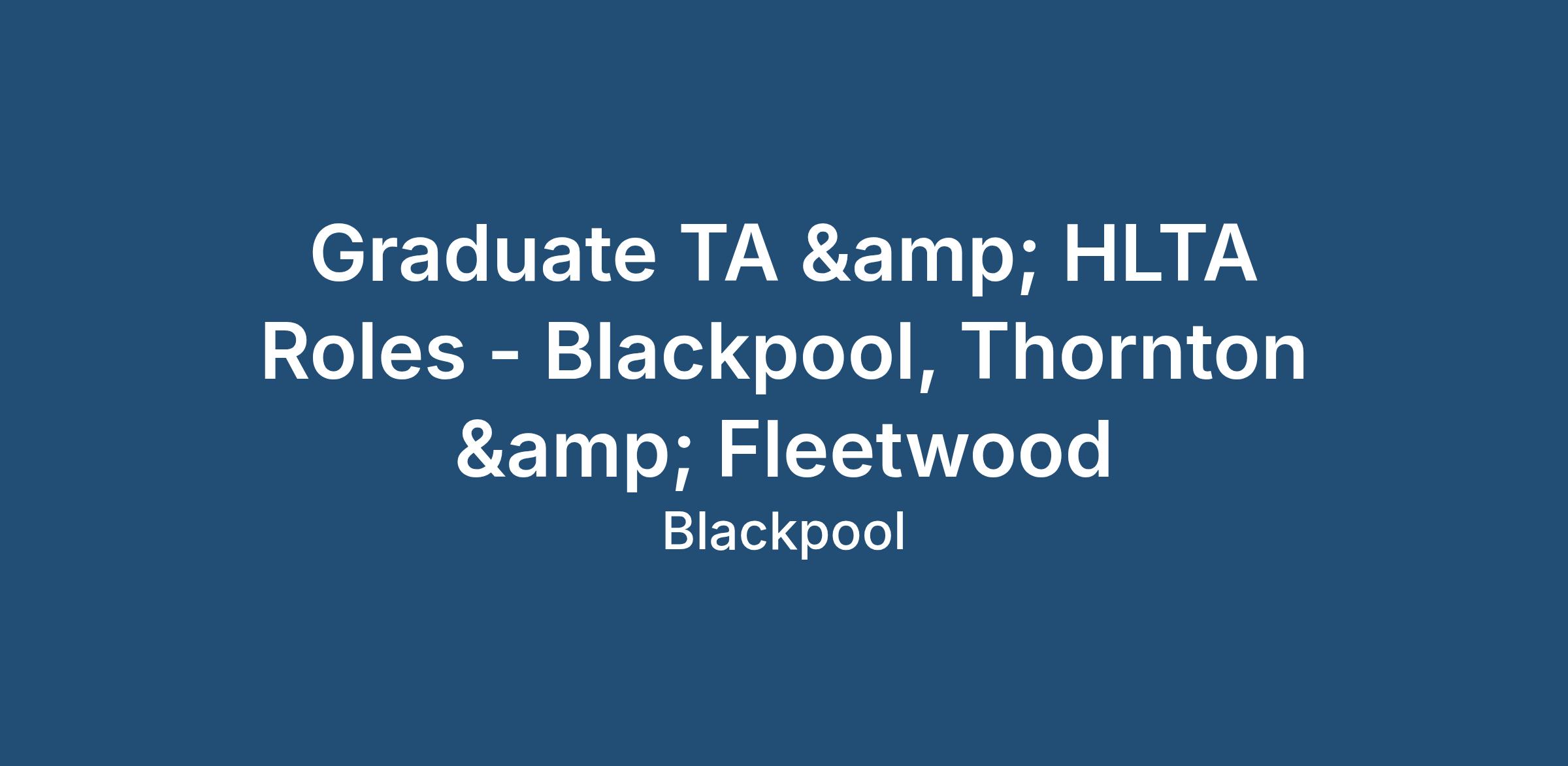 Graduate TA & HLTA Roles - Blackpool, Thornton & Fleetwood