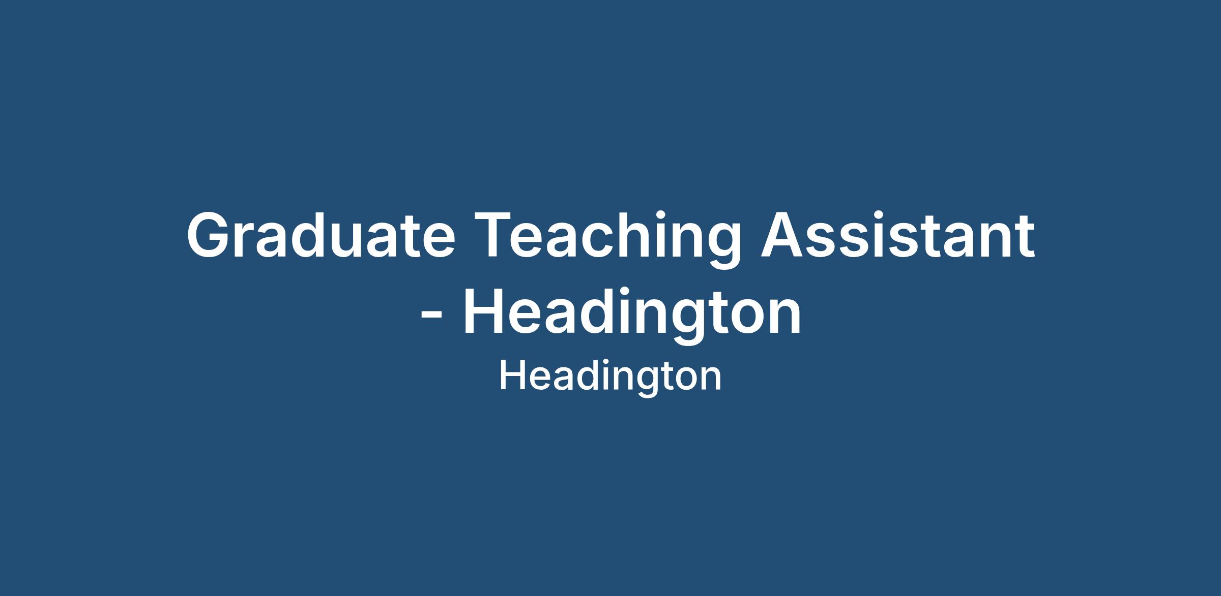 Graduate Teaching Assistant - Headington