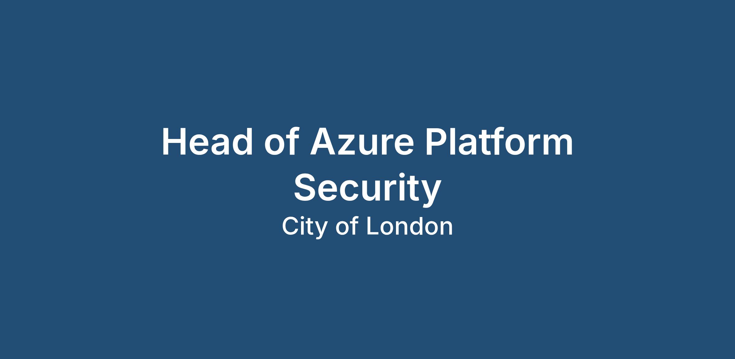 We have a current opportunity for a Head of Azure Platform Security on a permanent basis. The position will be based in London. For further information about this position please apply.