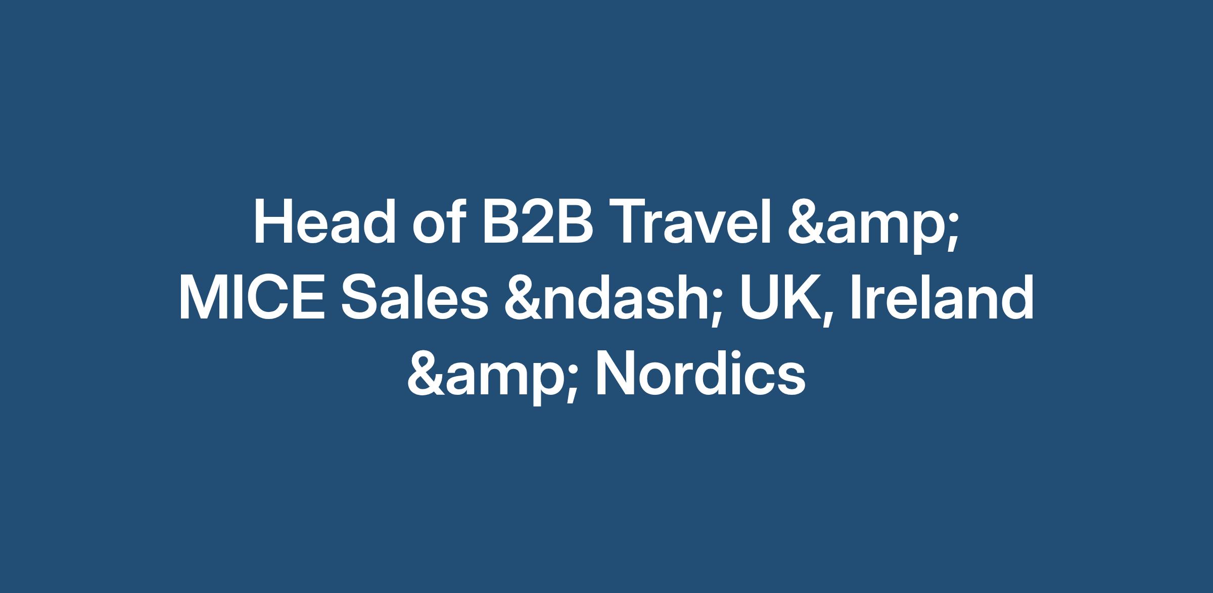 Head of B2B Travel & MICE Sales – UK, Ireland & Nordics