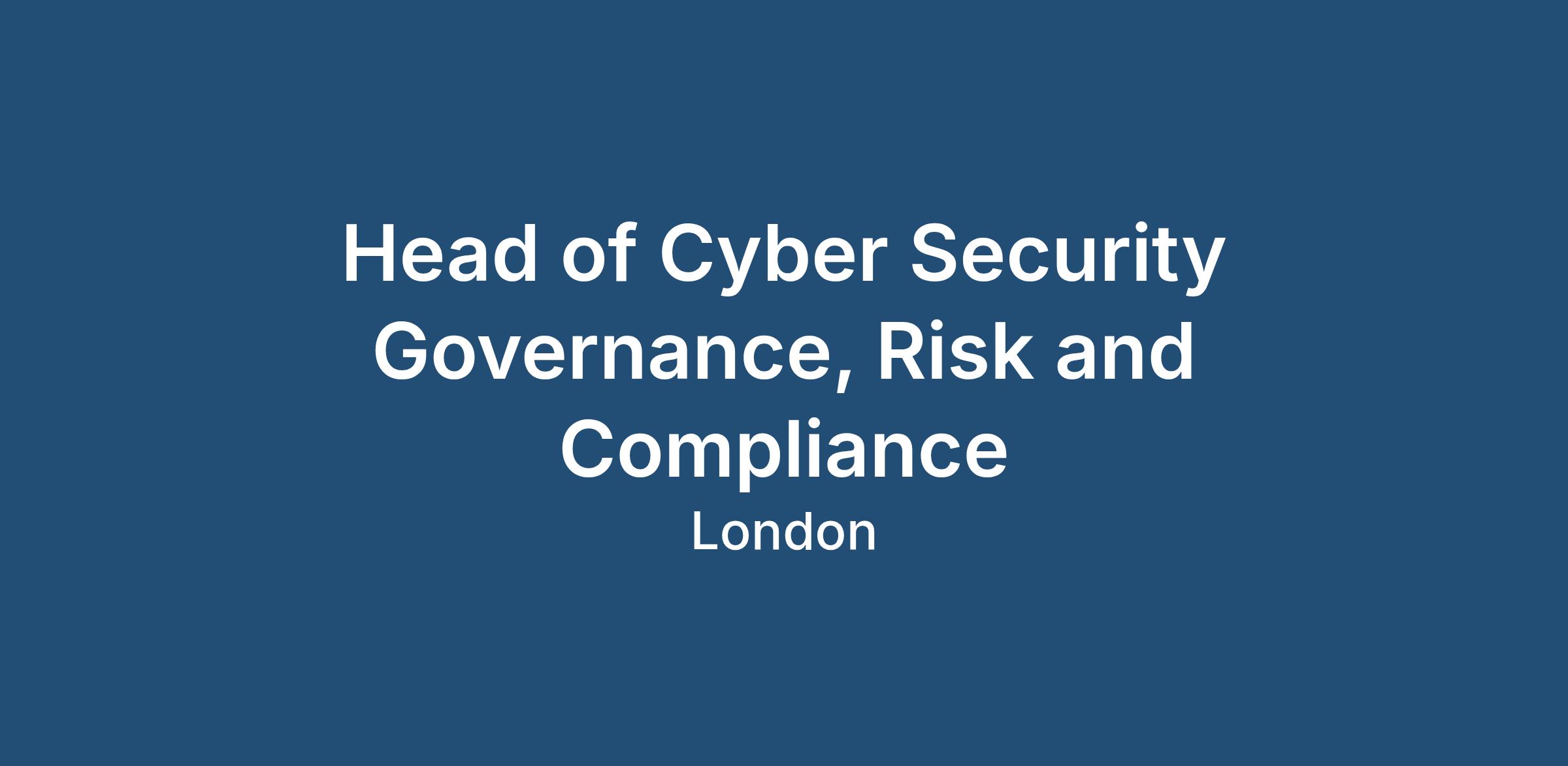 The Head of Cyber Security Governance, Risk & Compliance (GRC) serves as the driving force behind the Groups vision for world-class cyber resilience and is accountable for defining and advancing the enterprise cyber risk and assurance strategy. This role champions a culture of proactive risk management, robust governance, and unwavering compliance, ensuring that the Group not only meets, but sets the standard for information security across a complex, global business landscape.