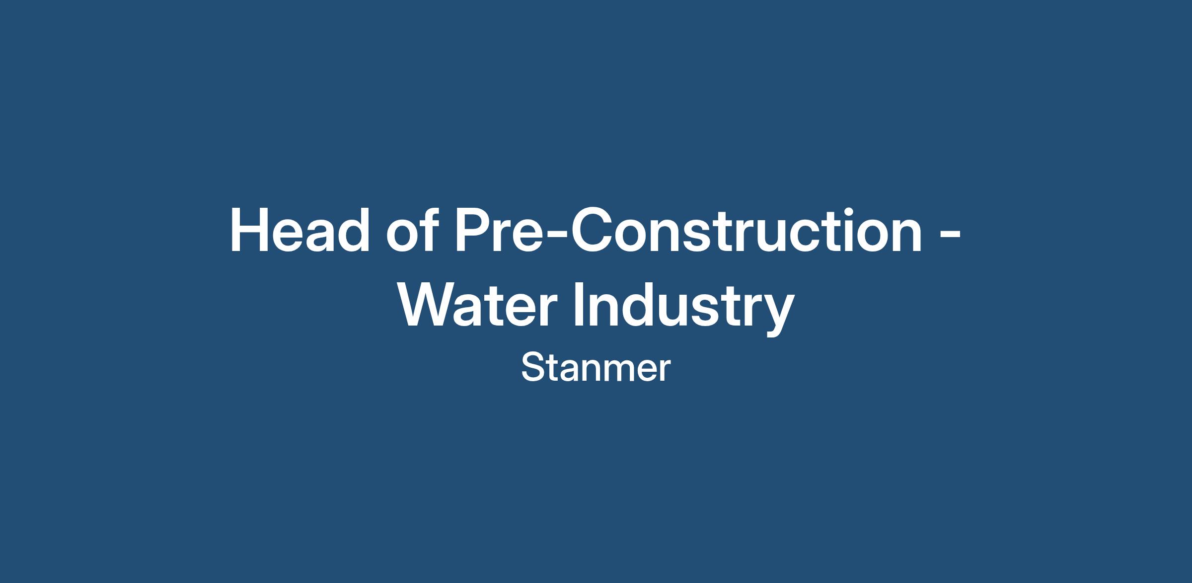 Head of Pre-Construction - Water Industry
