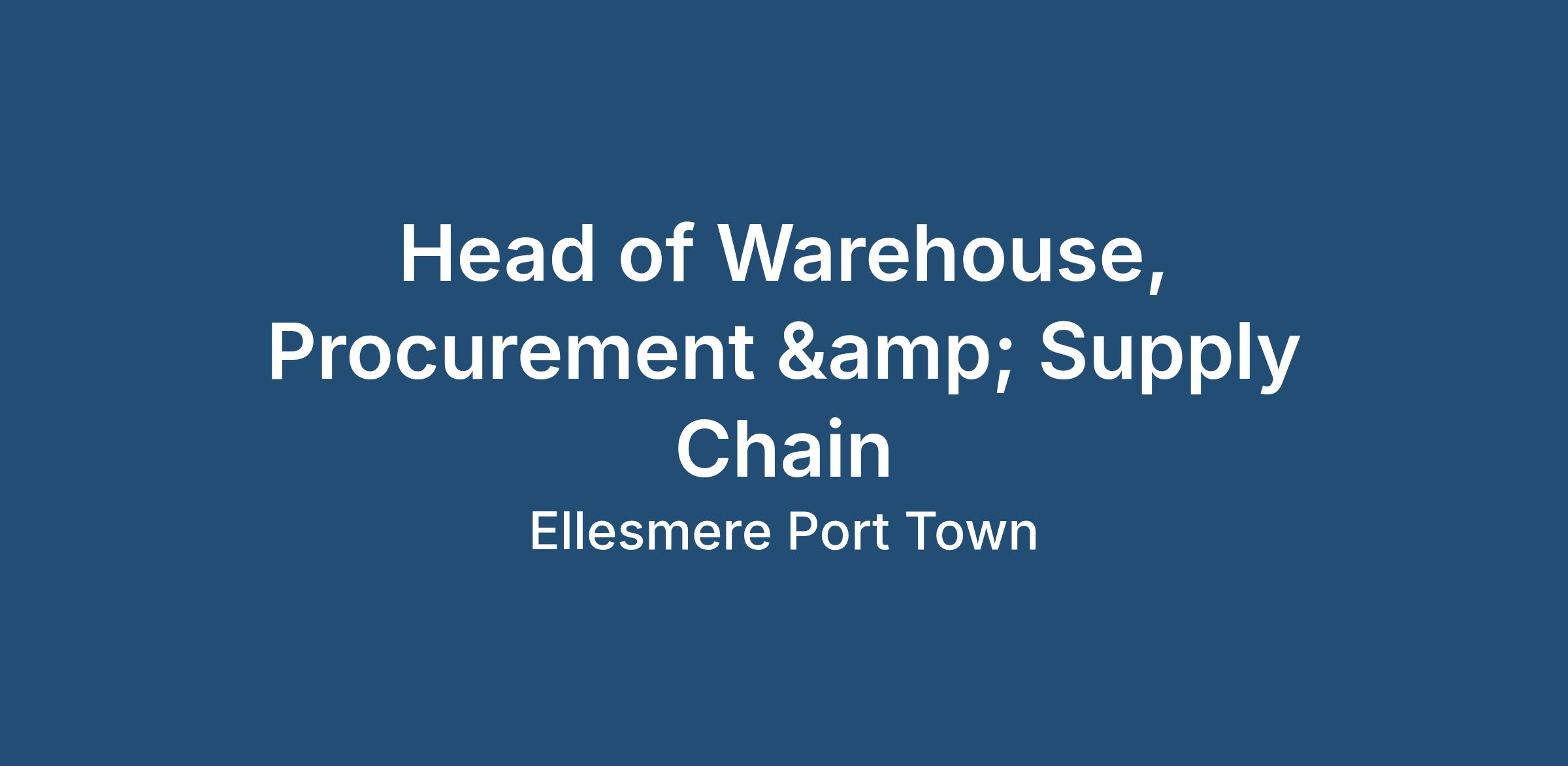 Head of Warehouse, Procurement & Supply Chain | Ellesmere Port | Up to £75,000 DOE