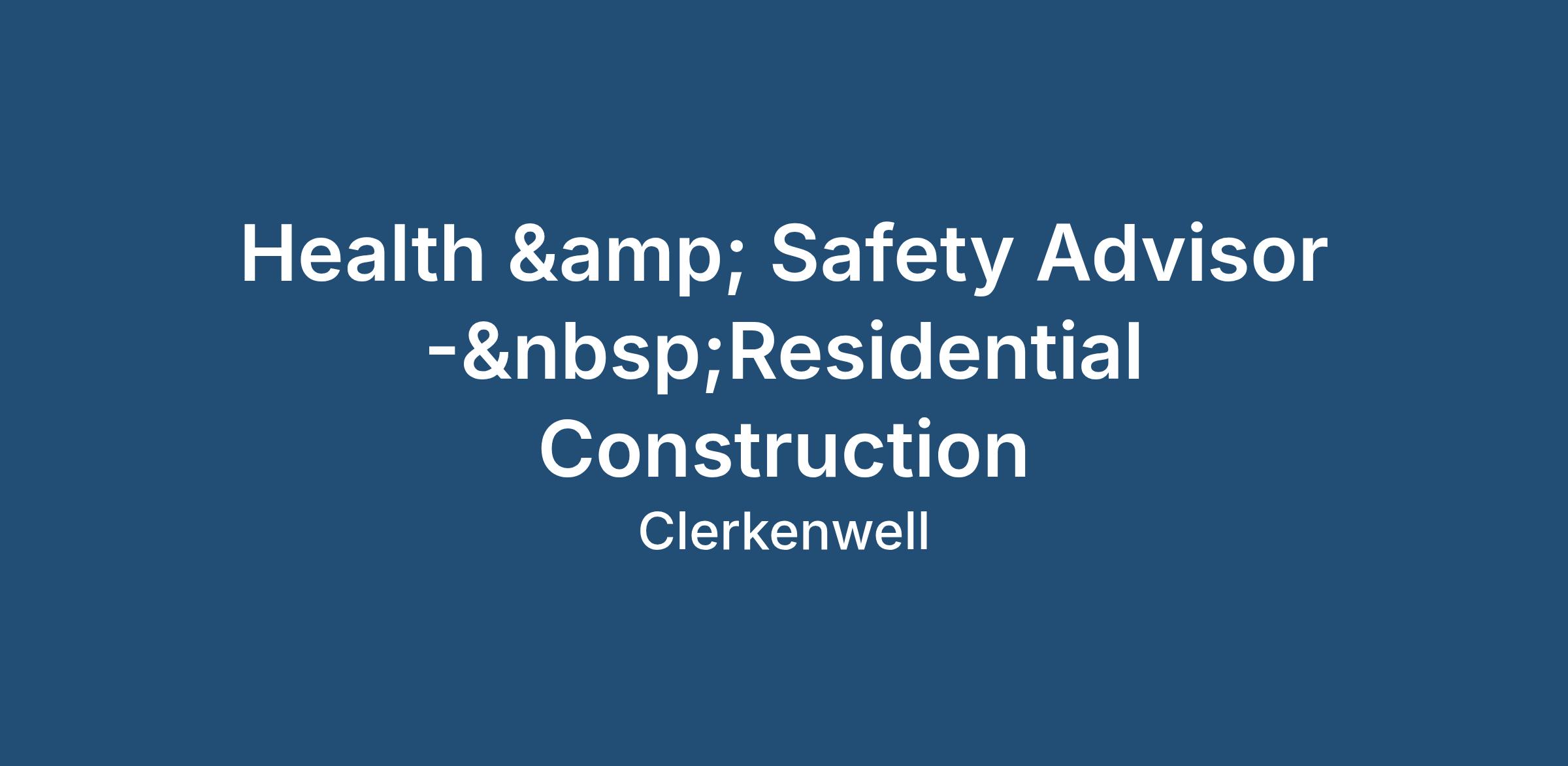 Health & Safety Advisor - Residential Construction