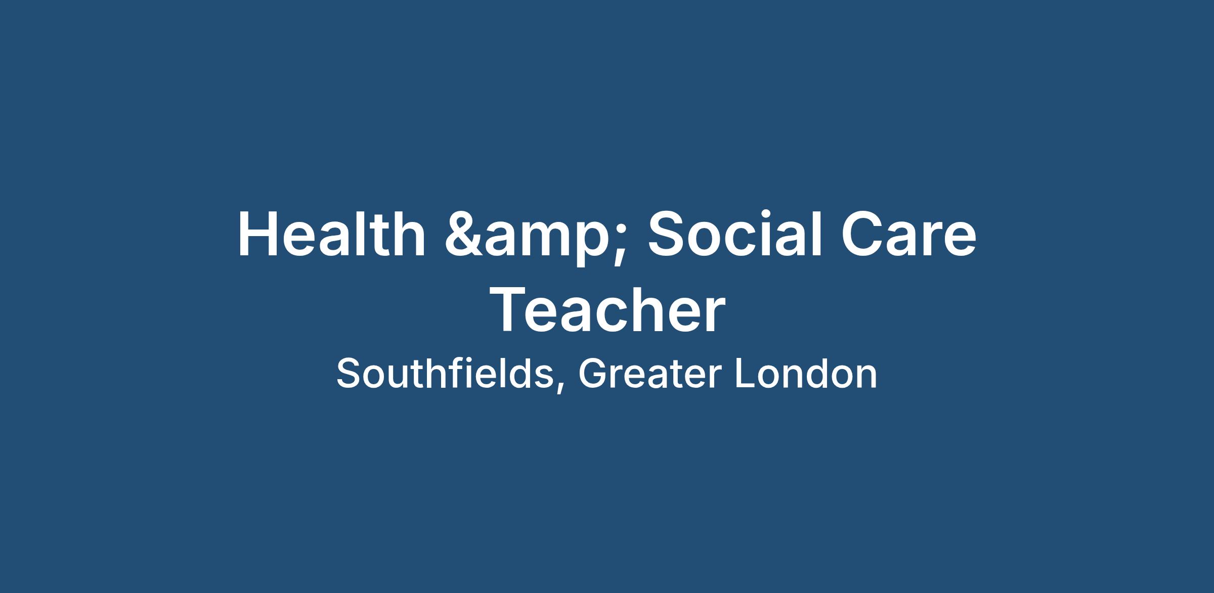This Health & Social Care Teacher position will be full time and permanent.