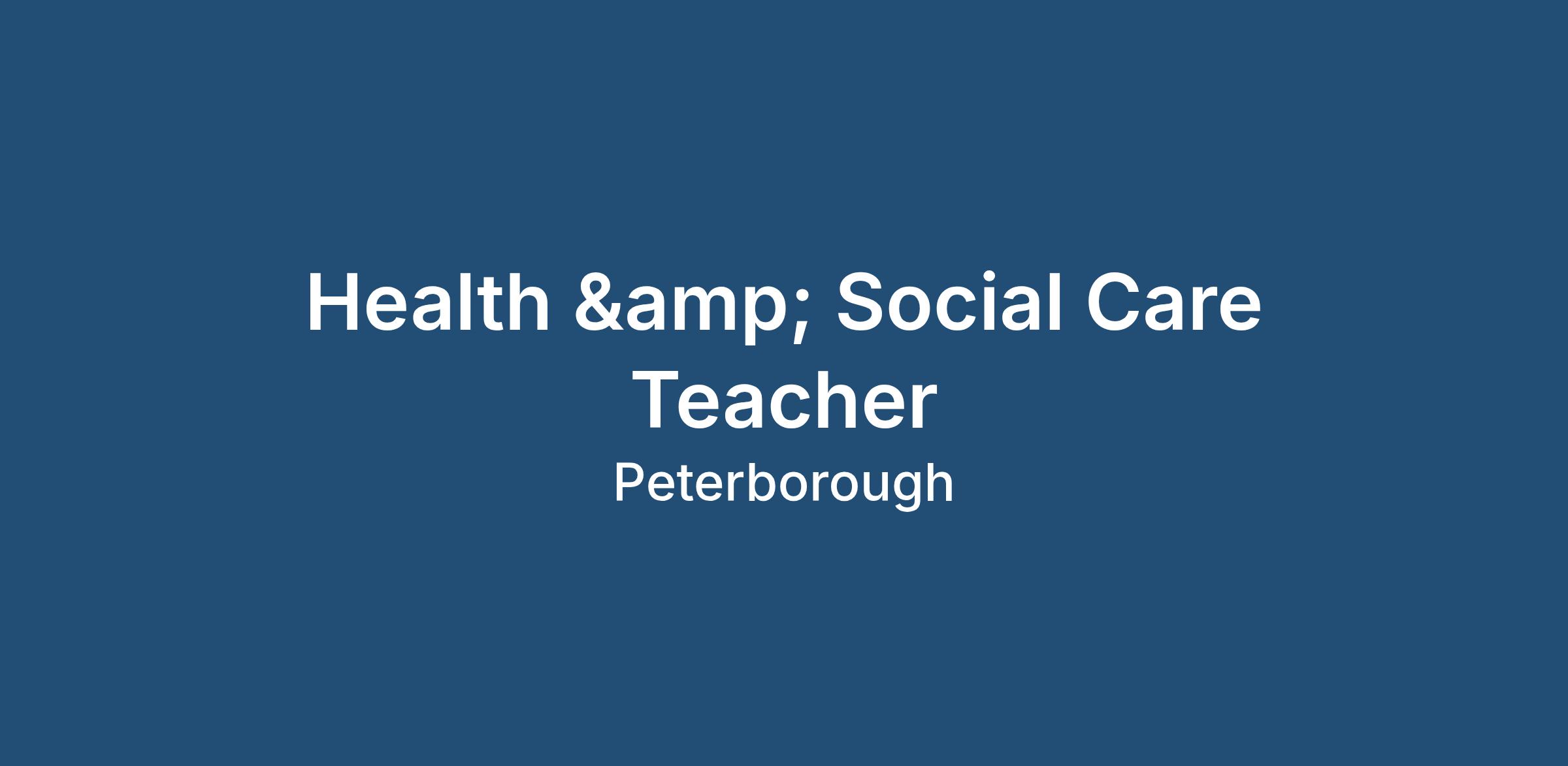 If you are a committed Health & Social Care Teacher looking for your next full-time opportunity in the Peterborough area, we would love to hear from you.