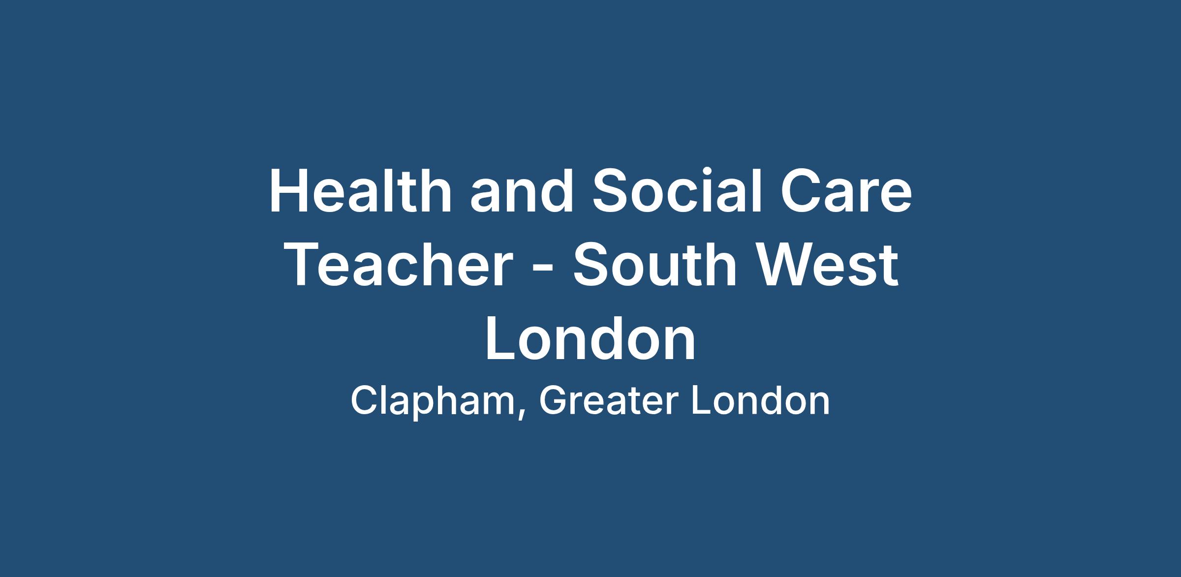 Health and Social Care Teacher - South West London