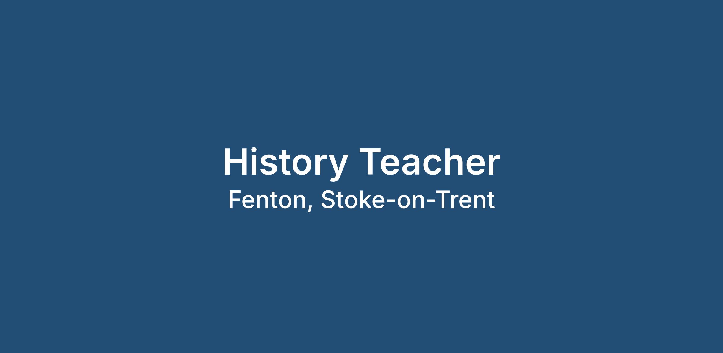 History Teacher / Stoke-on-Trent / Easter Start / Fixed-Term Contract
