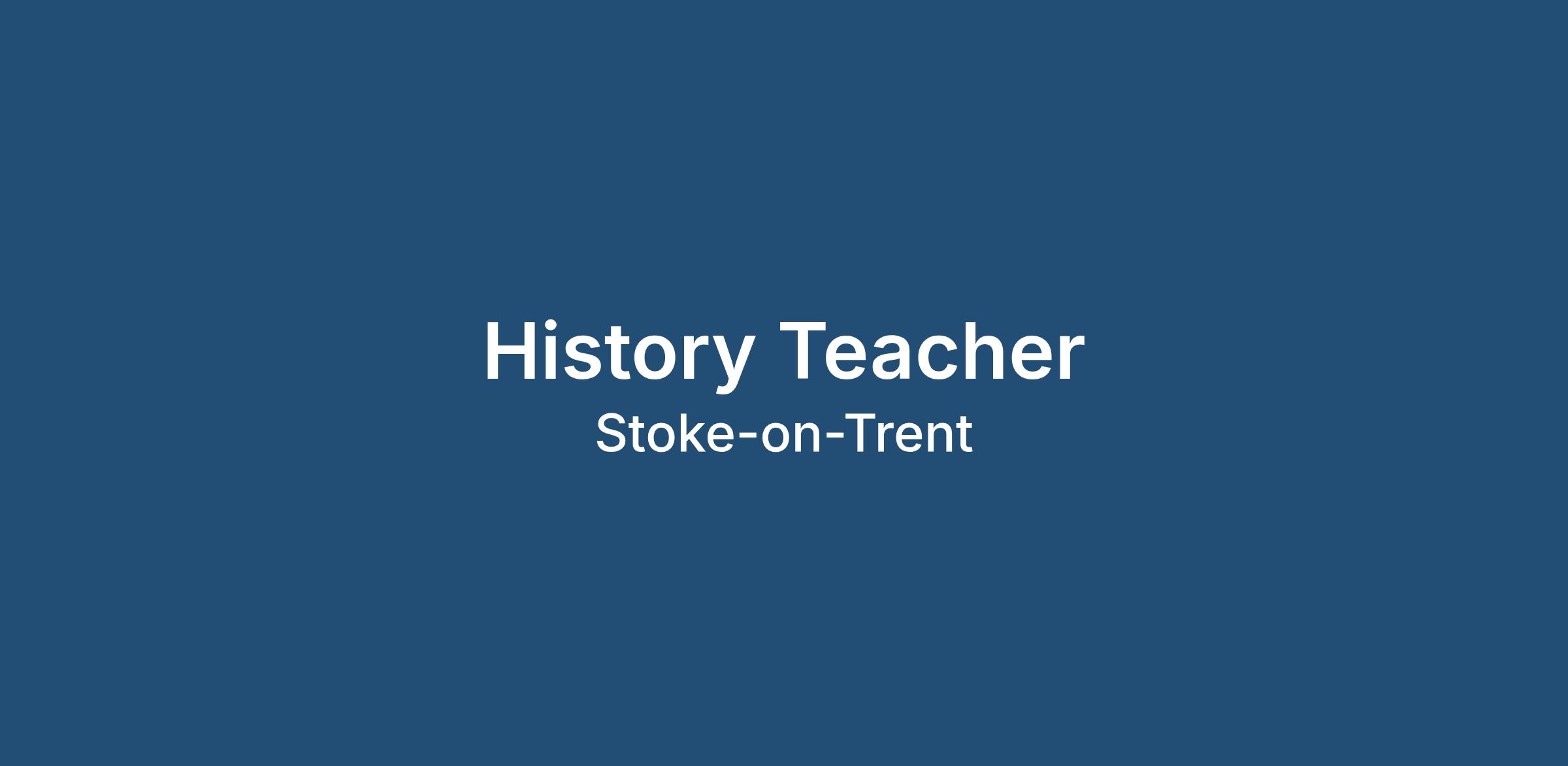 History Teacher Required - Secondary School, Stoke on Trent (Start Spring Term 2026)