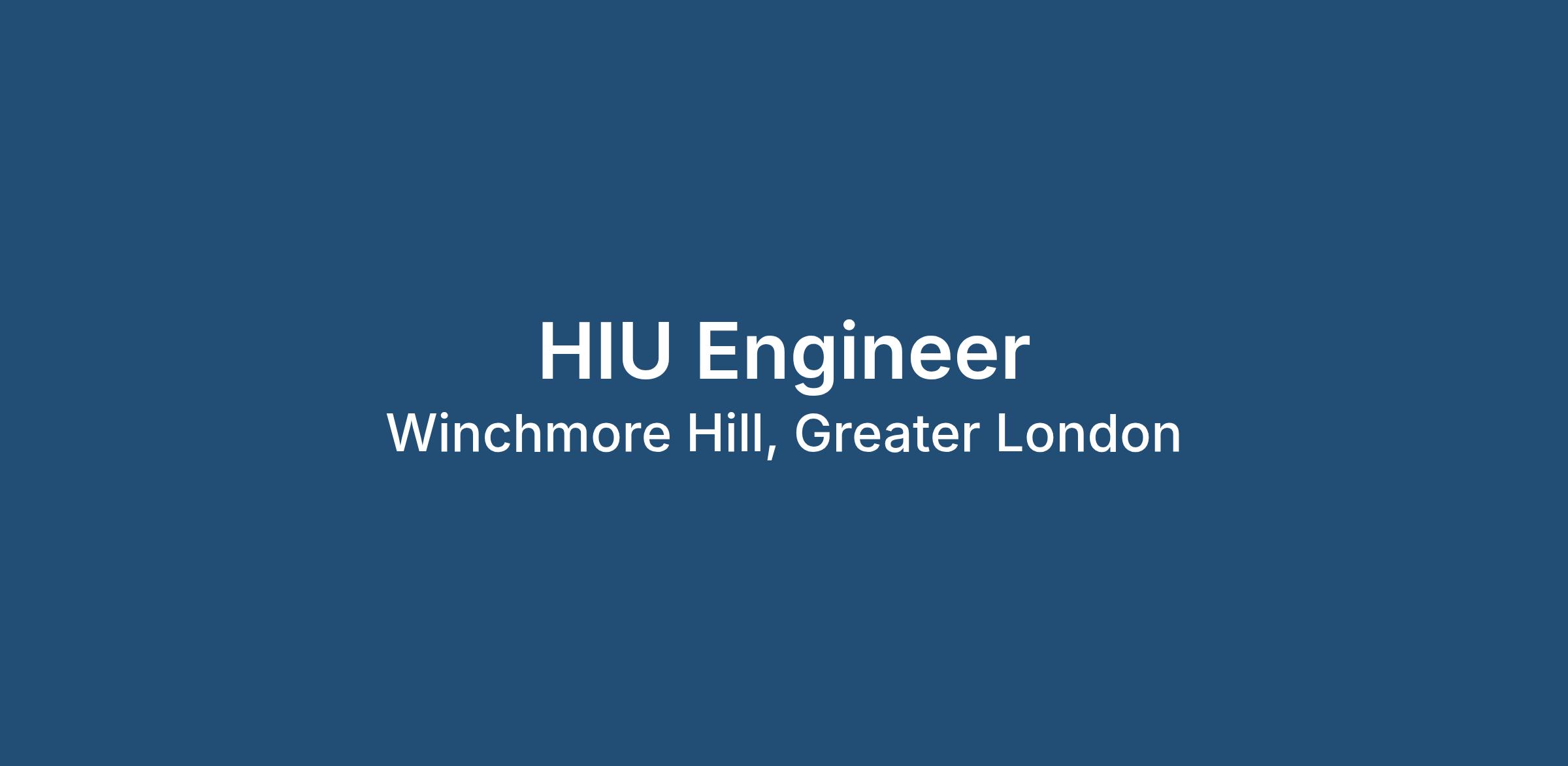 HIU Engineer – North London