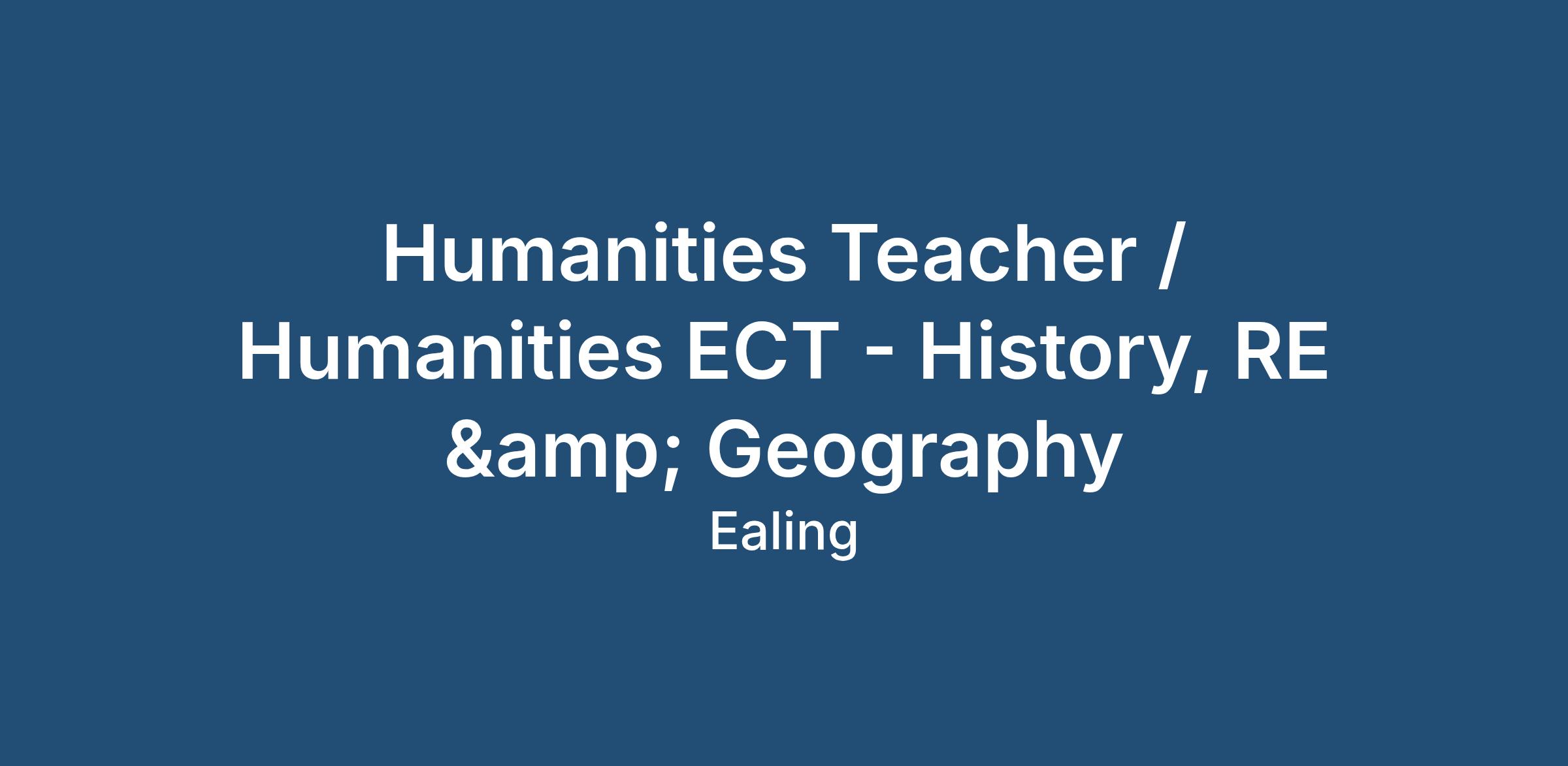 Humanities Teacher / Humanities ECT - History, RE & Geography